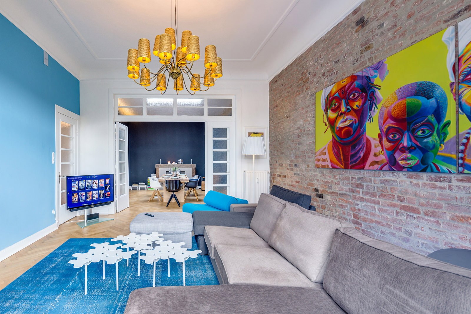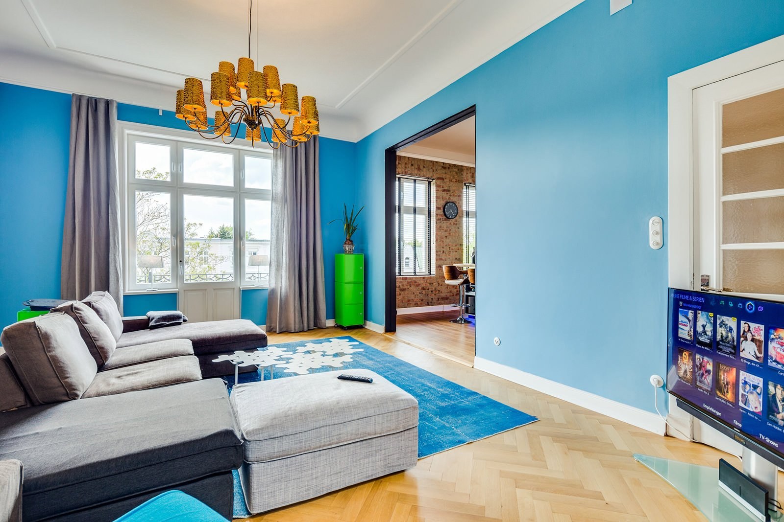Ярко голубой в интерьере