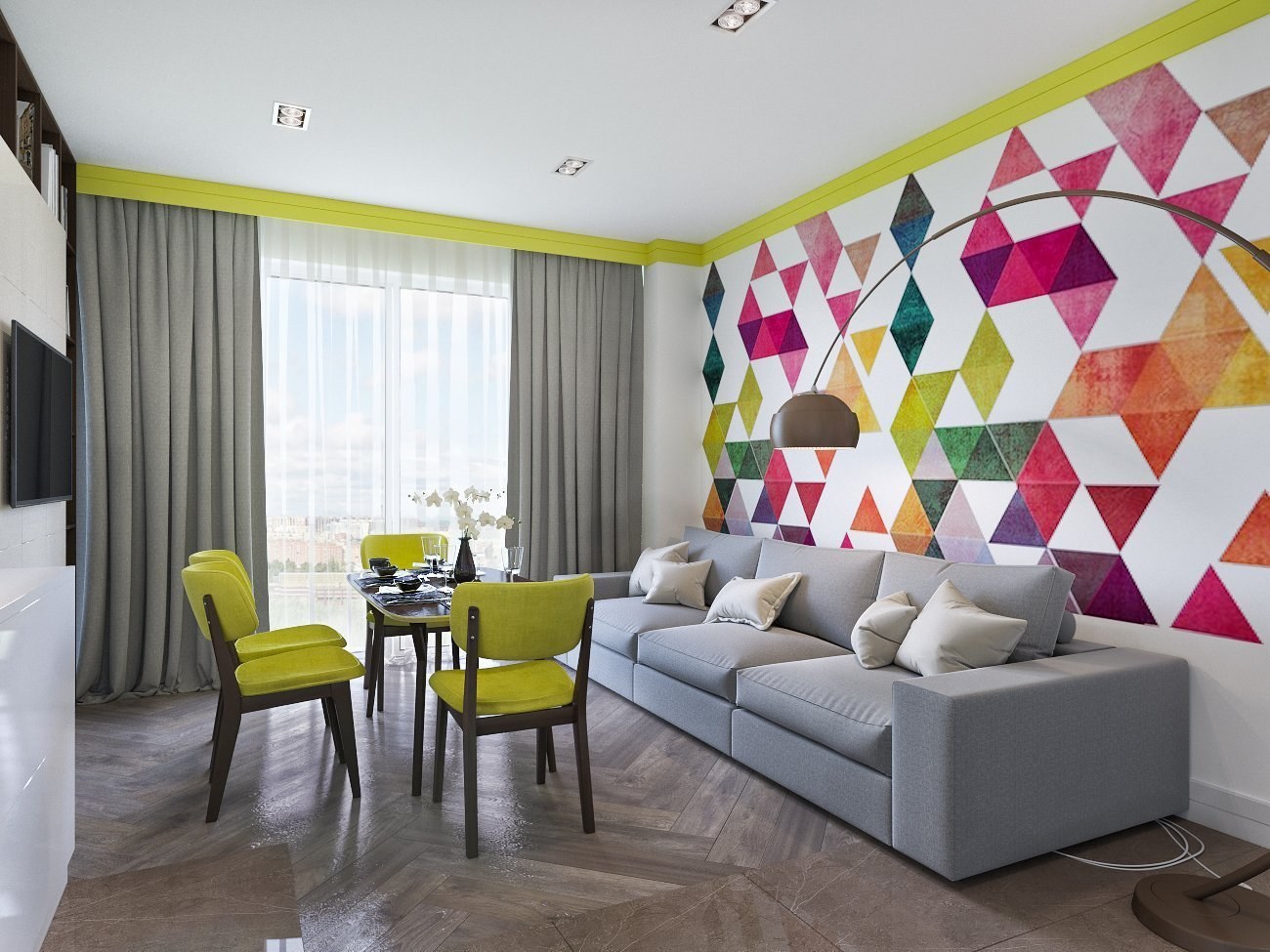 Яркая стена в гостиной