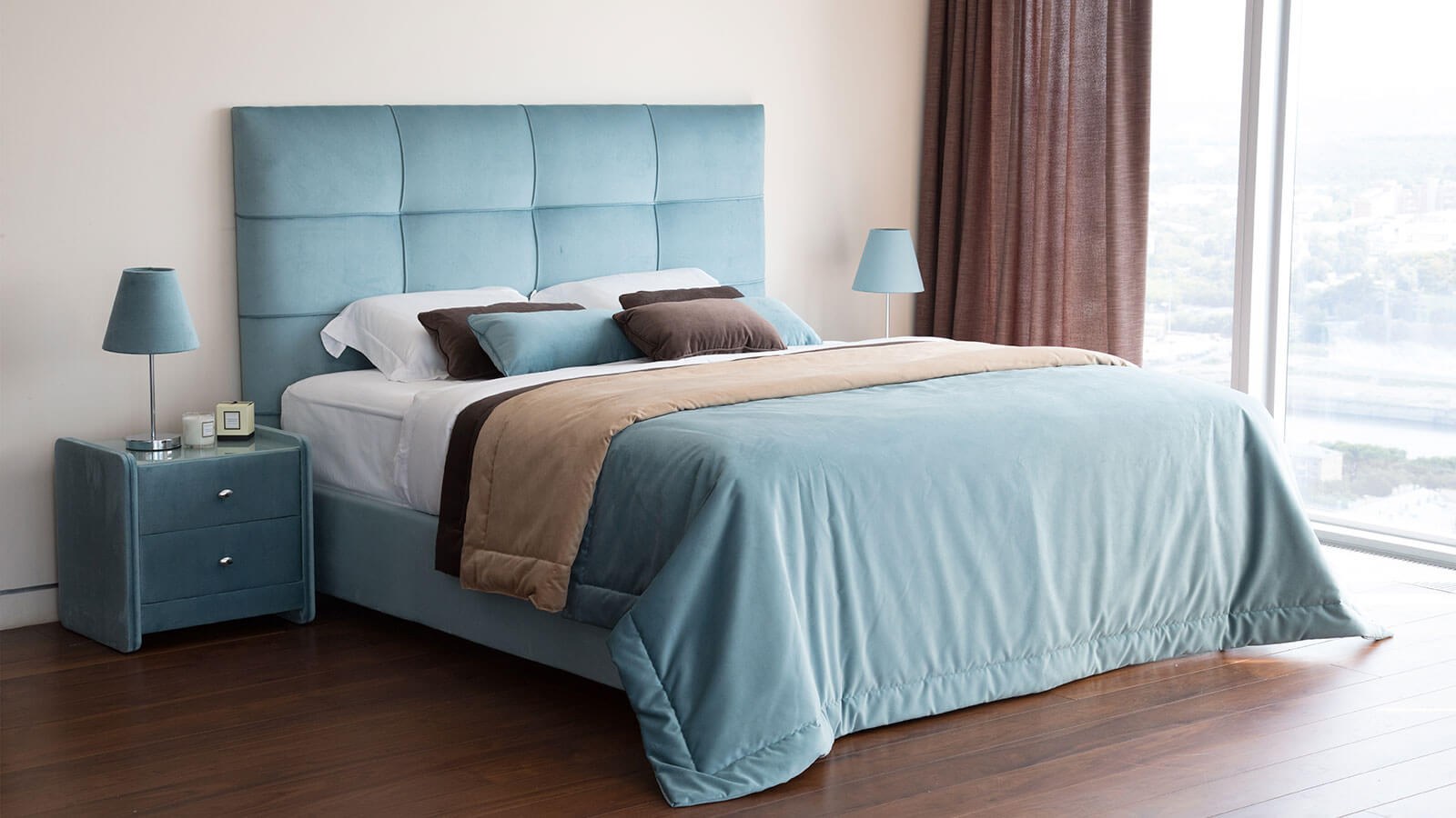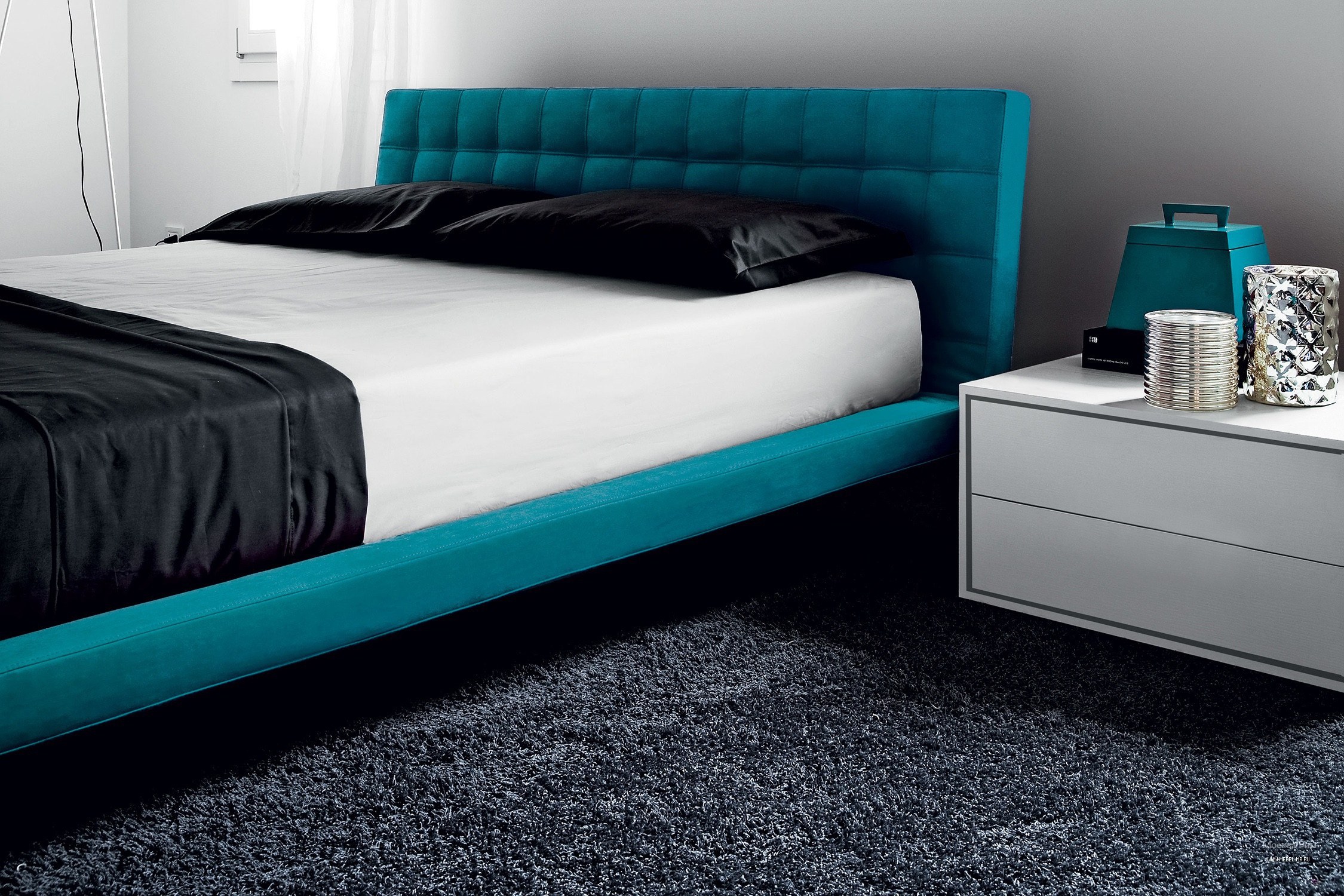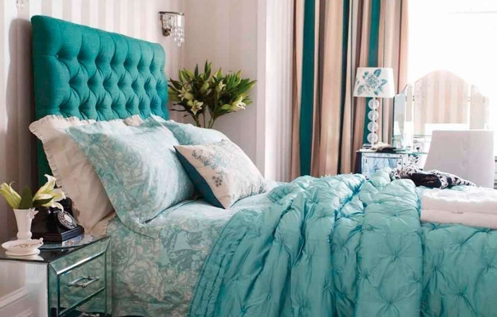 Кровать с бирюзовым изголовьем