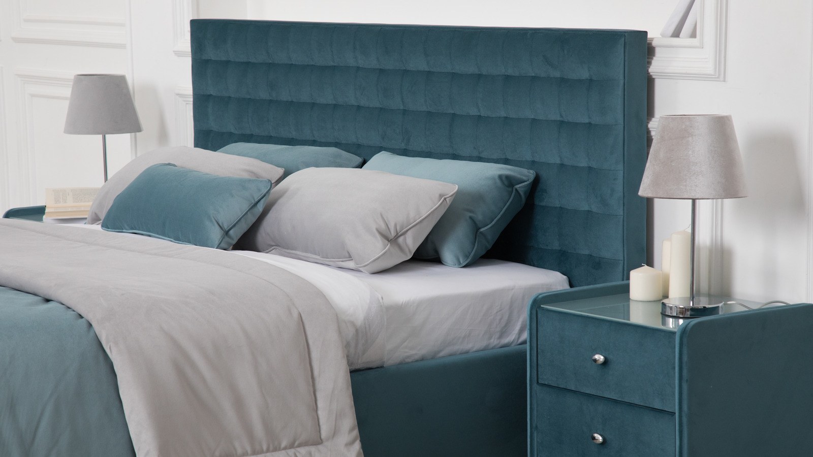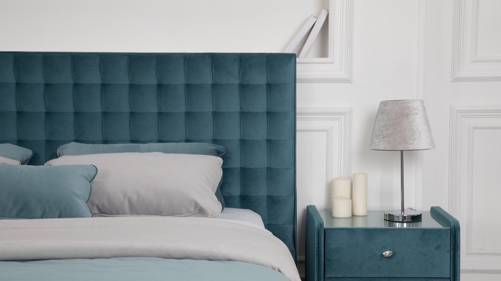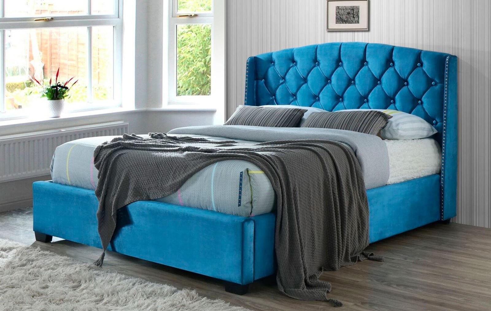 Кровать с бирюзовым изголовьем