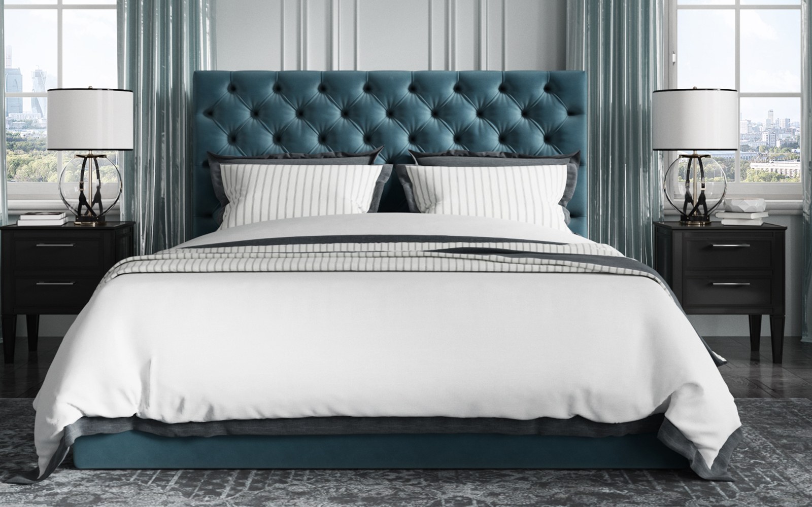 Темно бирюзовая спальня