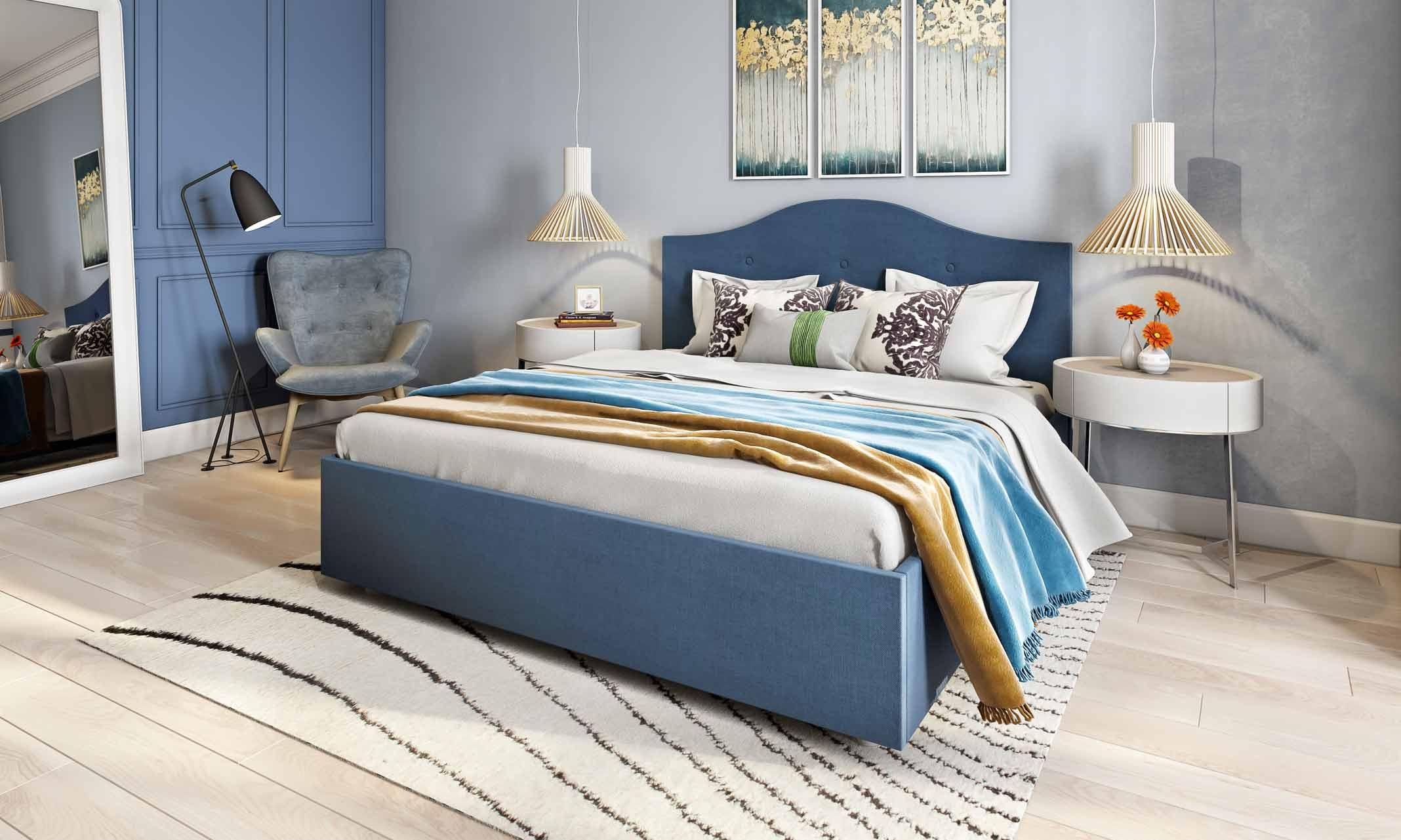 Синяя кровать Аскона