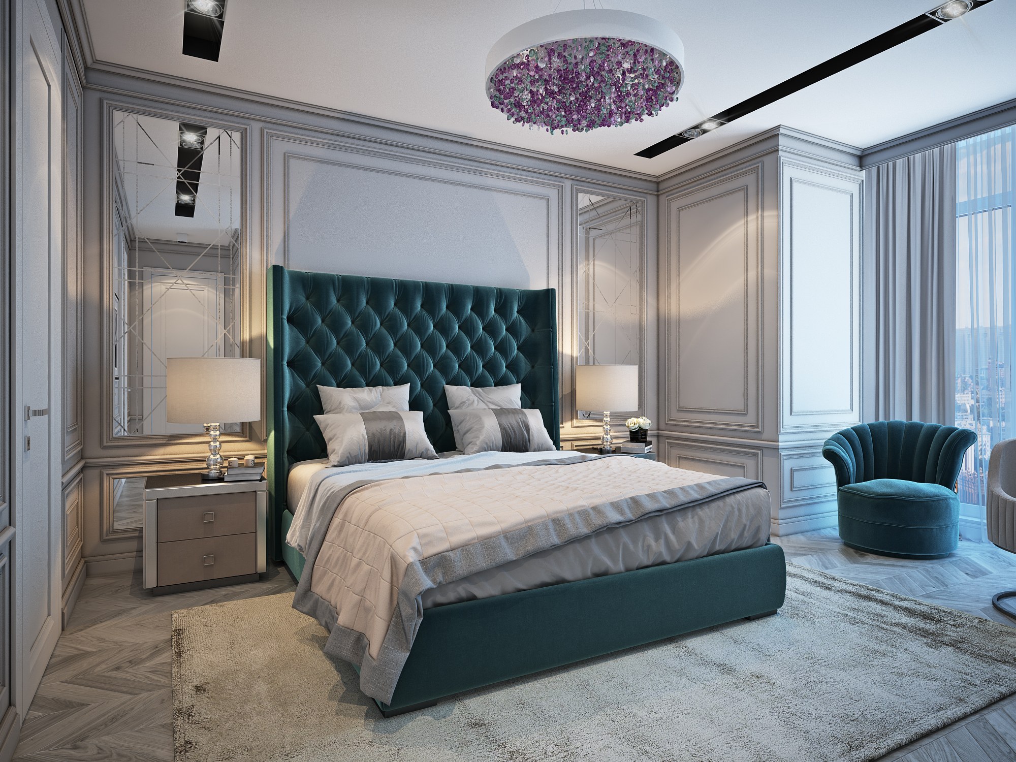 Спальня ар деко и Неоклассика бирюзовый