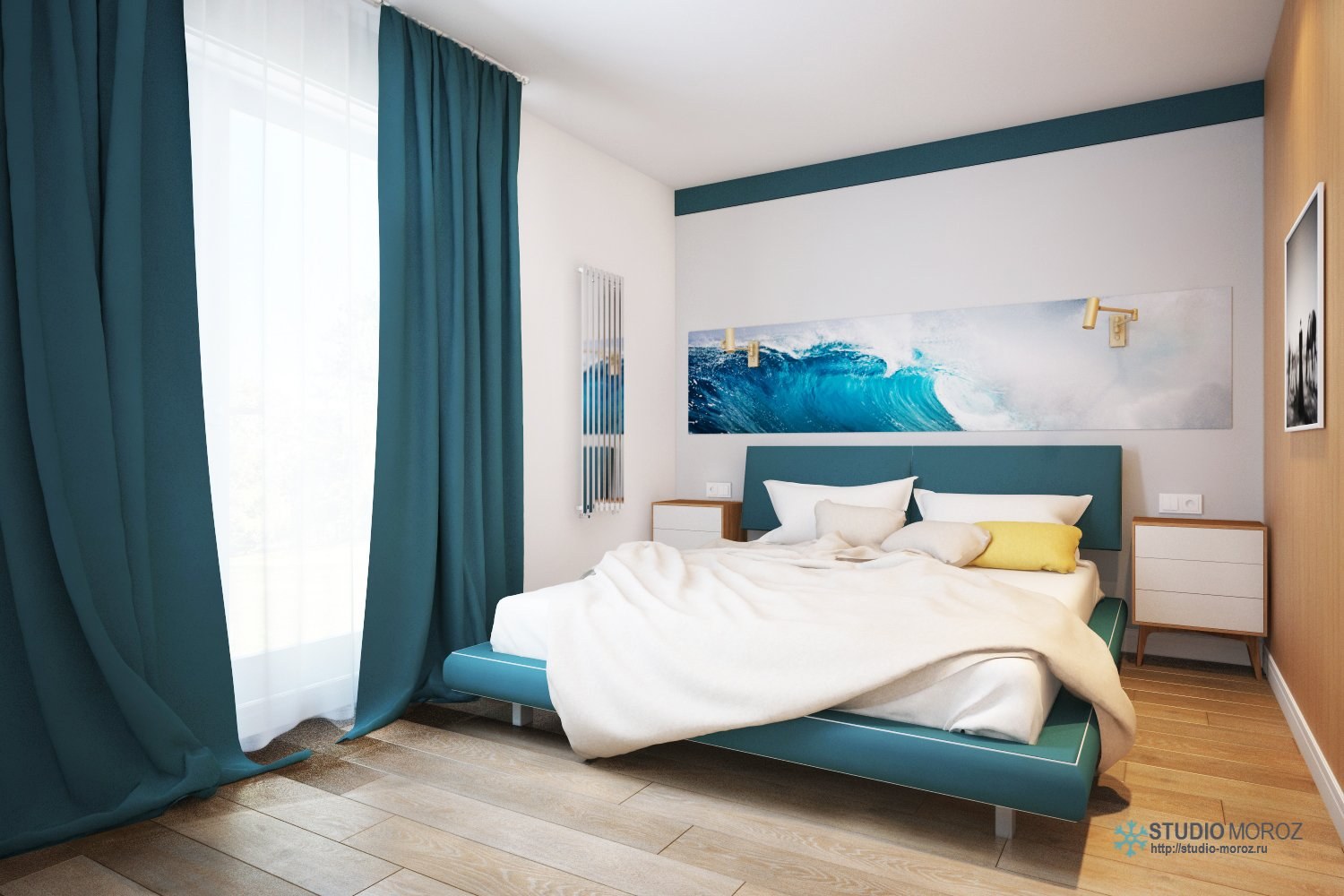 Спальня в тонах морской волны