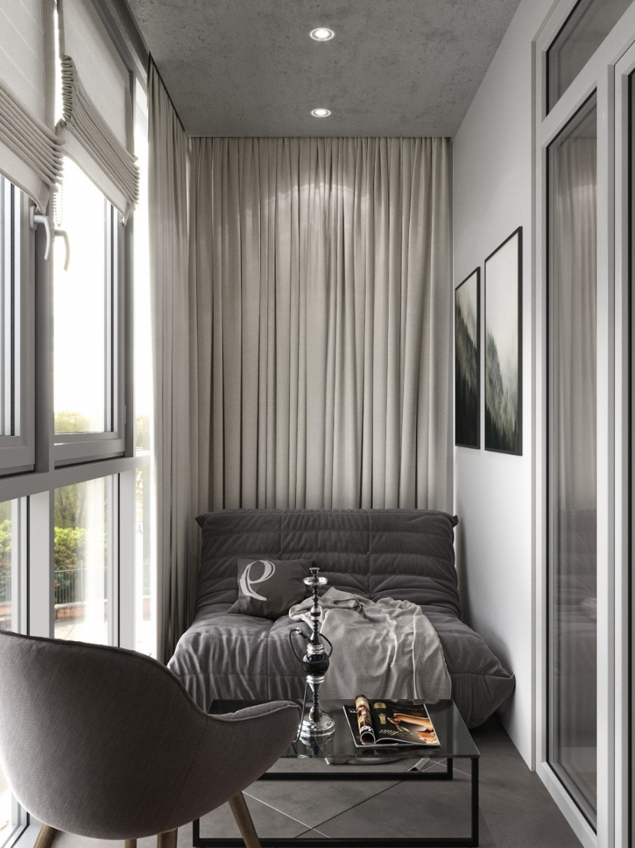 Серая лоджия интерьер