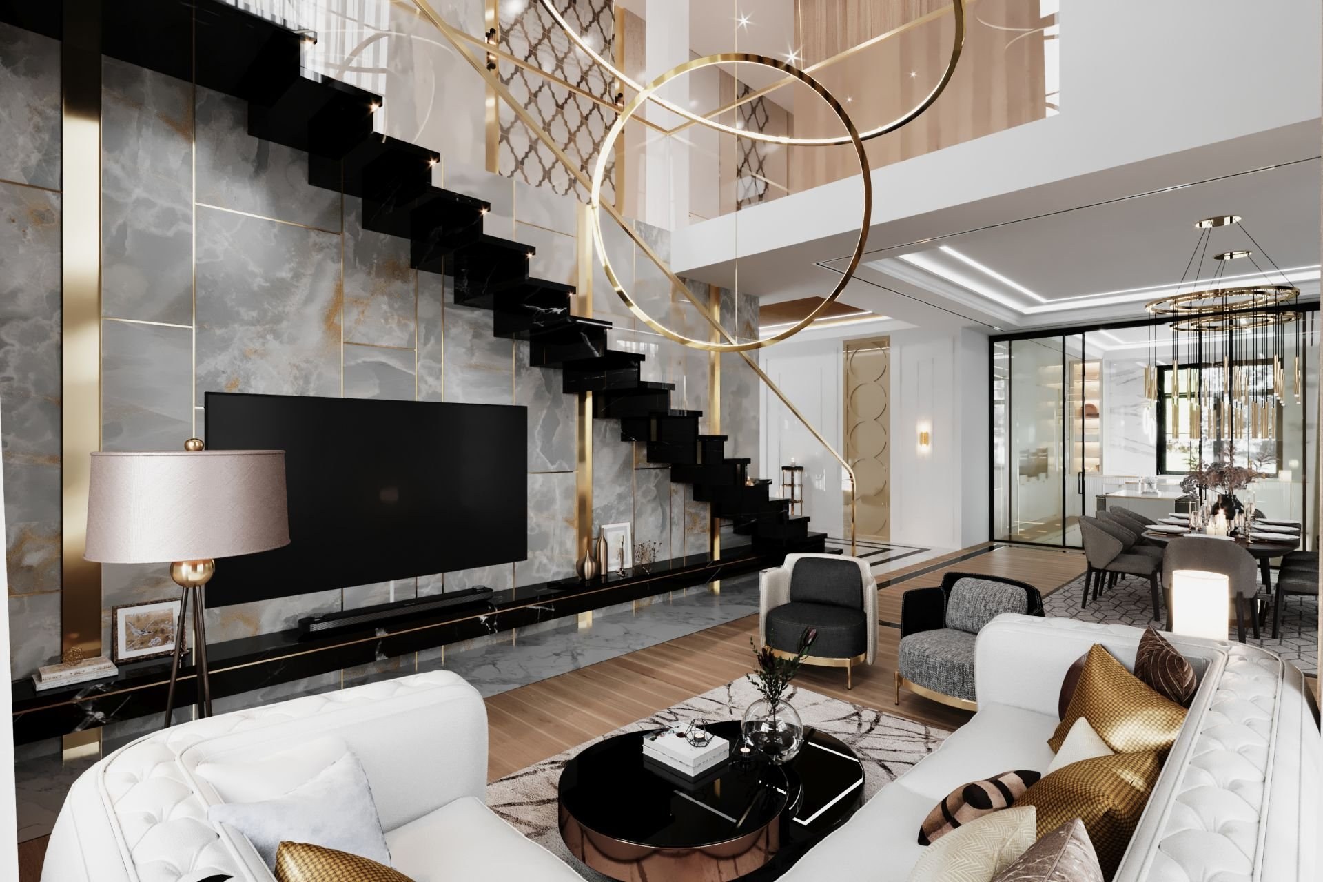 Современная гостиная с лестницей
