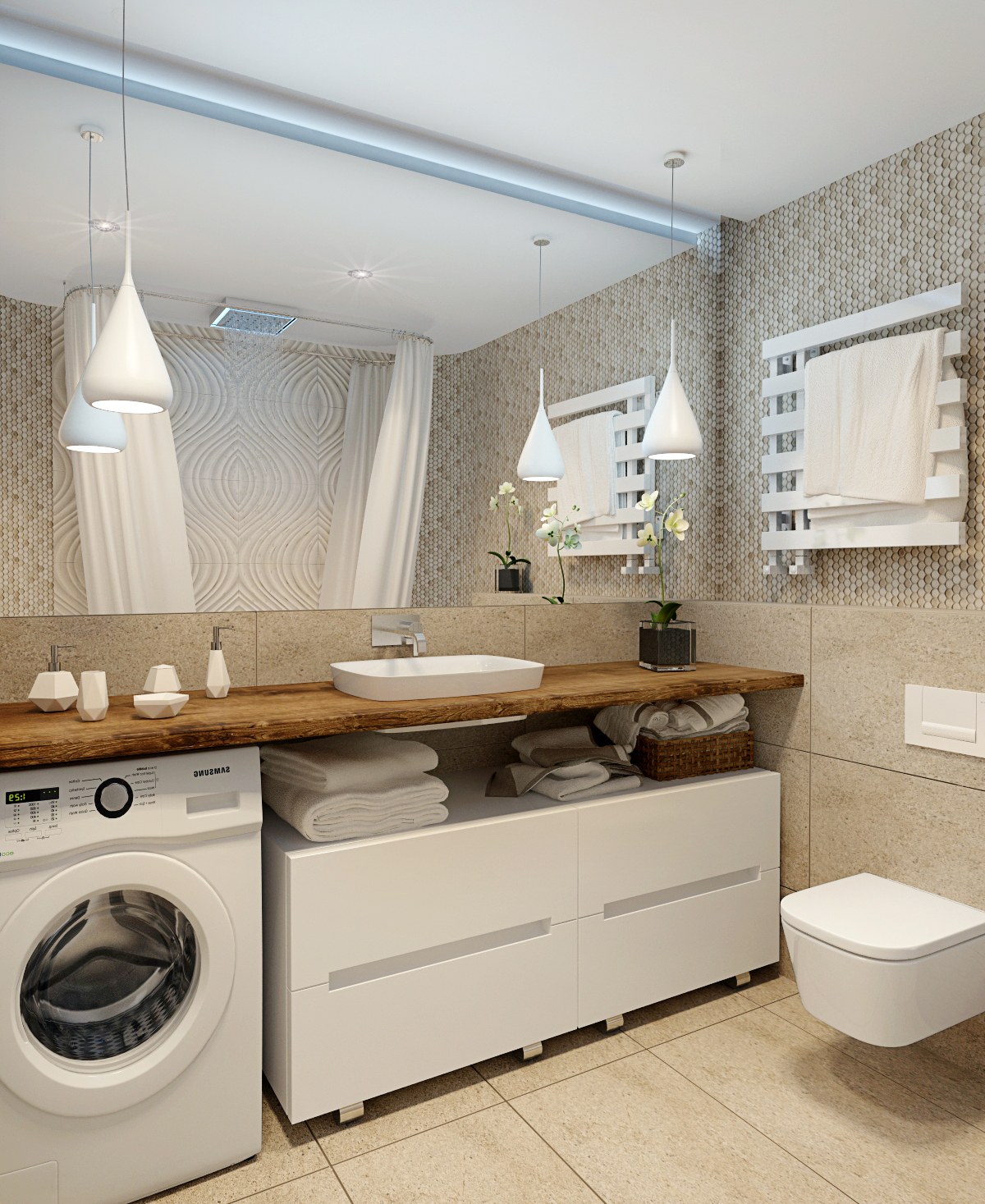 Современная ванная со стиральной машиной