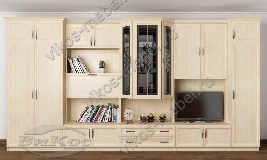 Стенки в зал классика светлые (45 фото)
