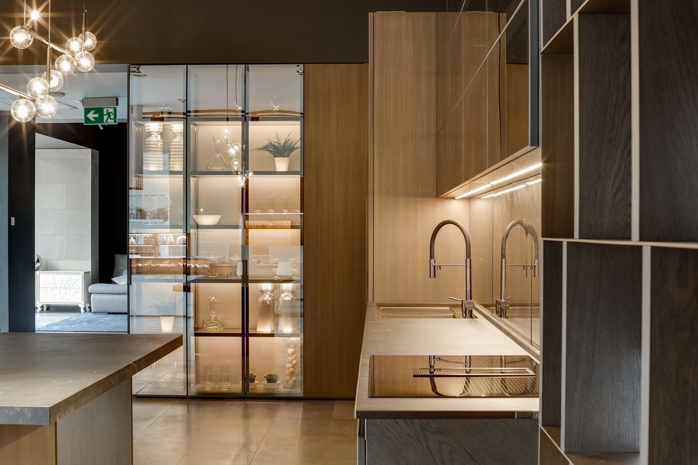 Стеклянные шкафы на кухне в современном стиле (46 фото)