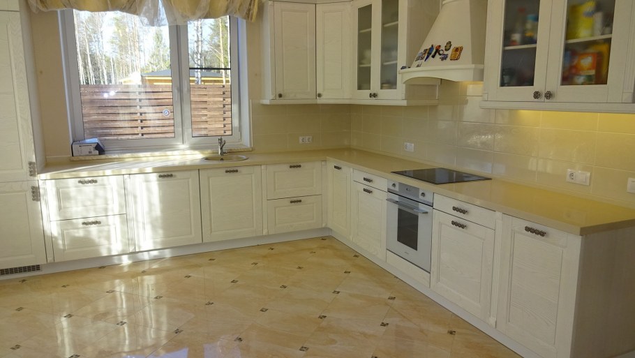 Кремовая кухня со столешницей сальвадор (46 фото)
