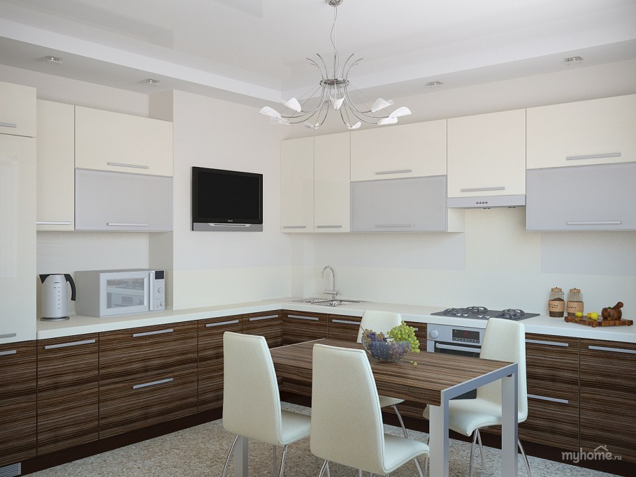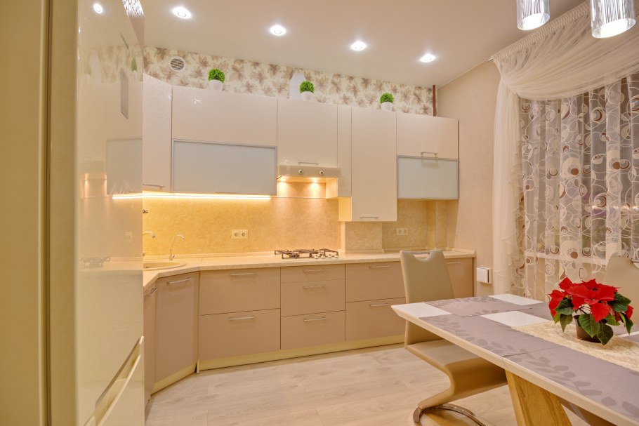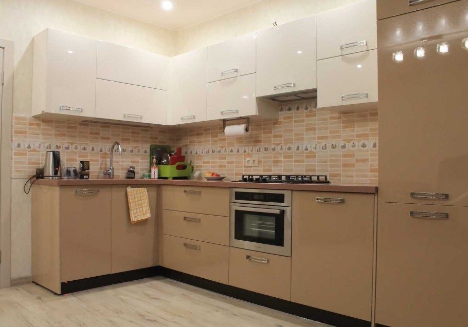 Бежевая глянцевая кухня в интерьере (53 фото)