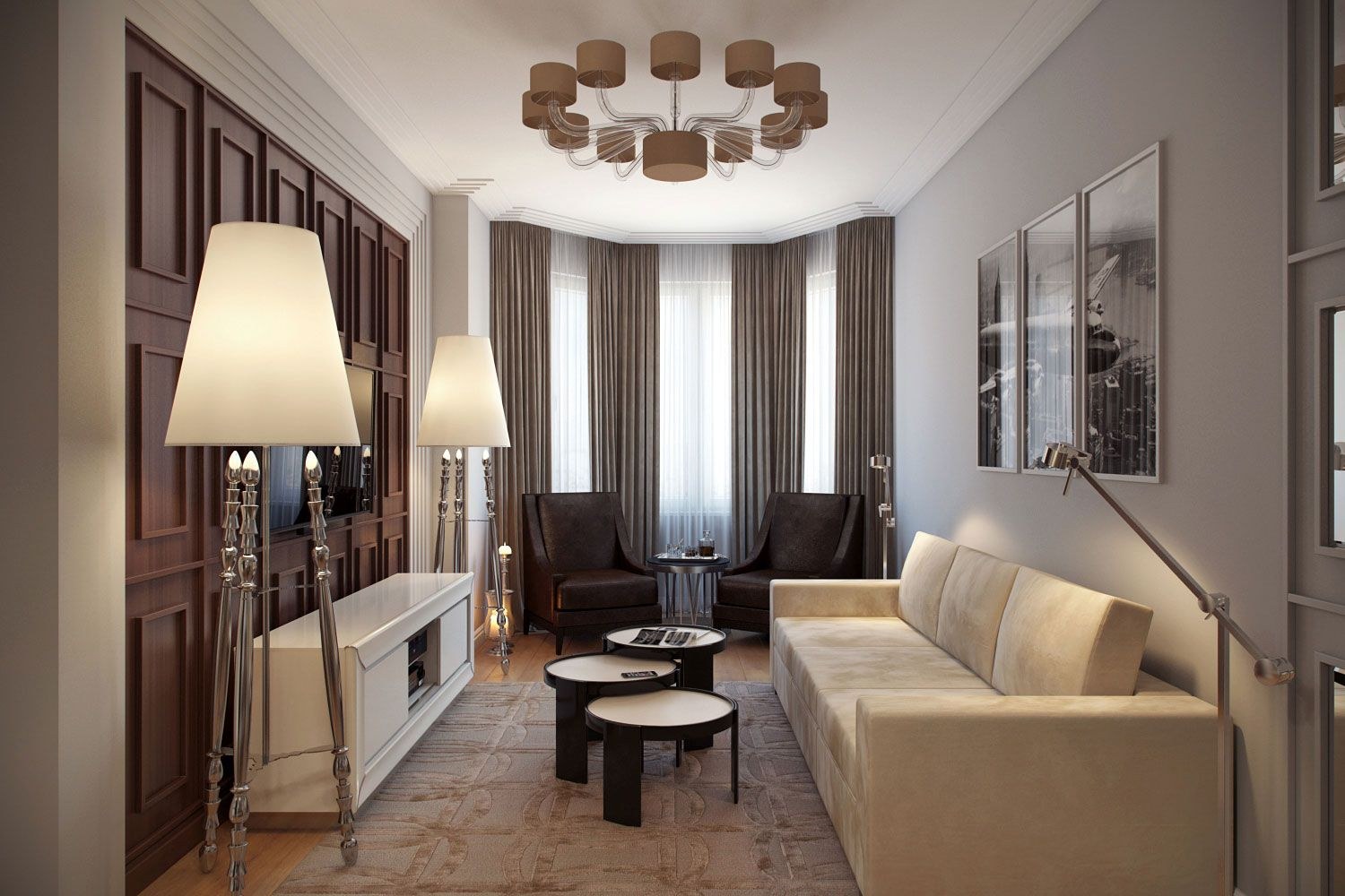 Узкая гостиная в стиле неоклассическая