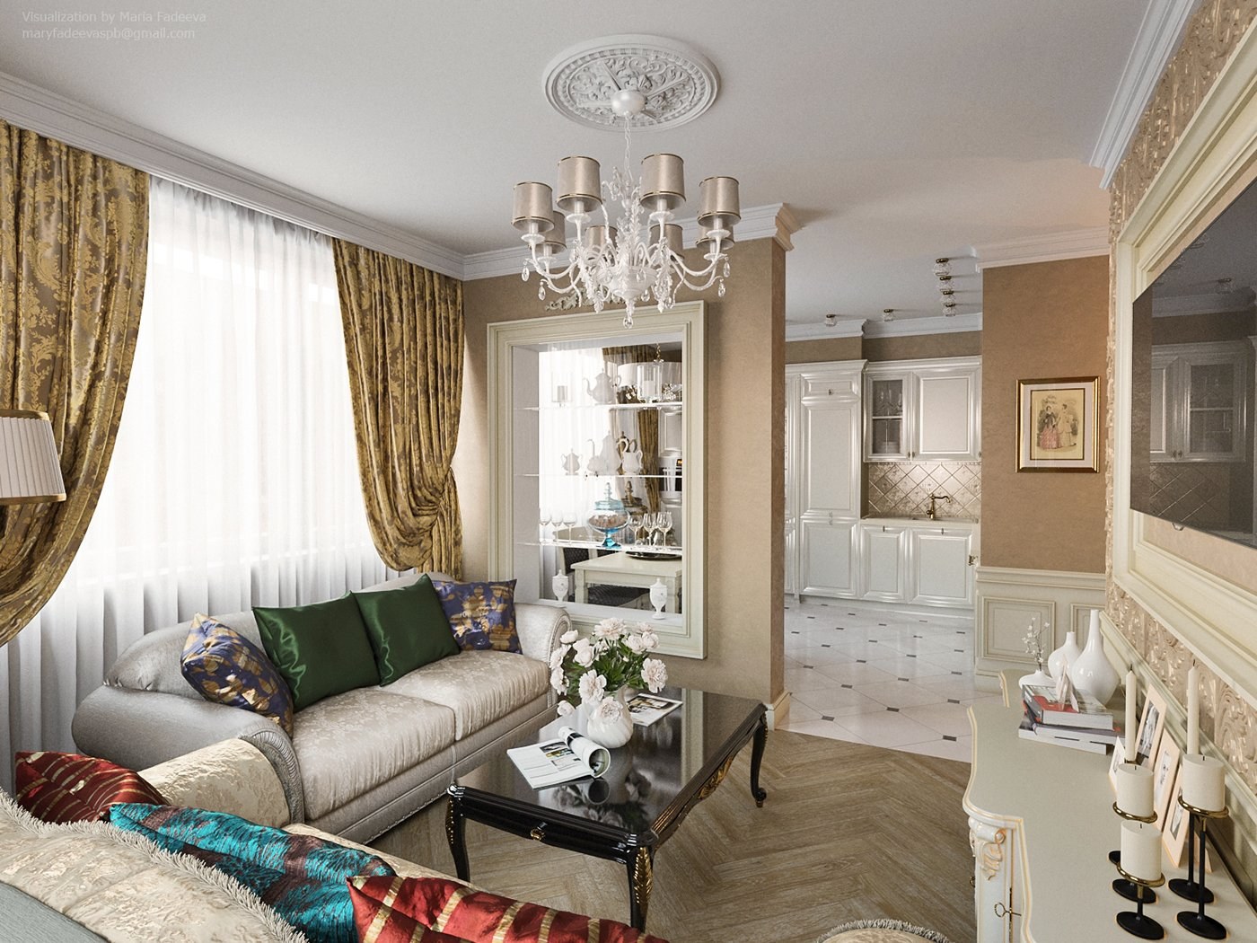 Кухня гостиная 40 кв Неоклассика