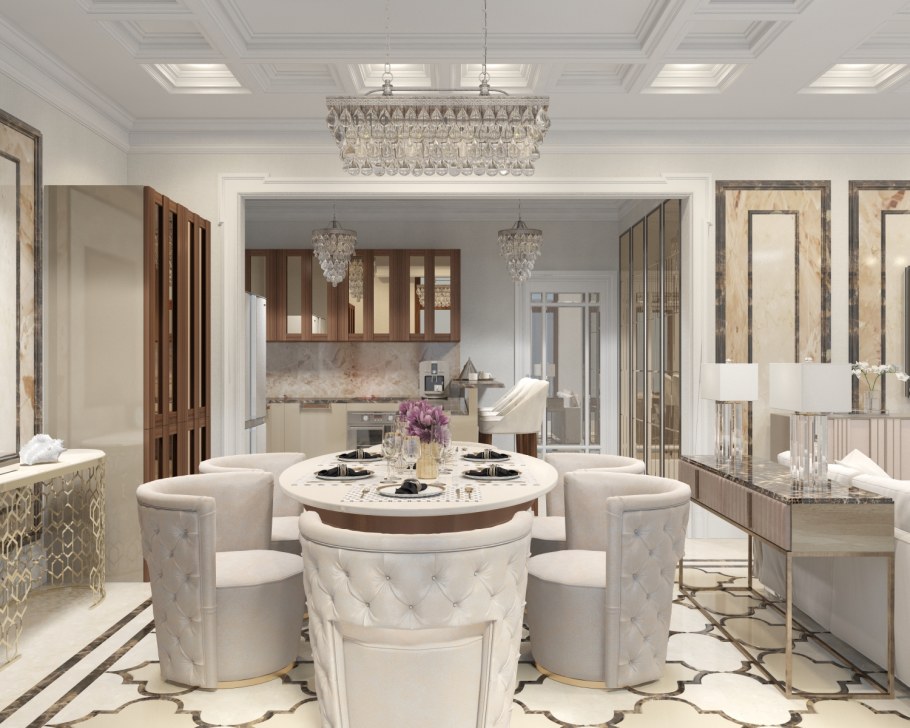 Арт-деко стиль в интерьере кухни в светлых тонах