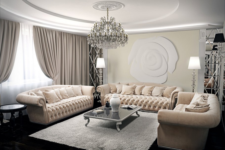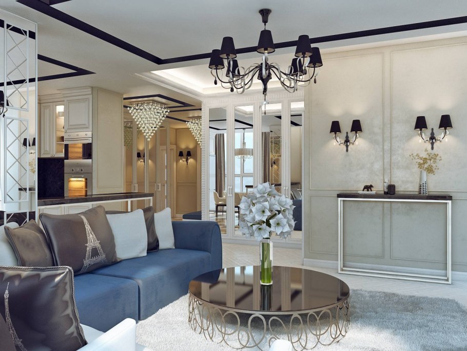 Гостиная в стиле арт деко в светлых тонах в интерьере (40 фото)