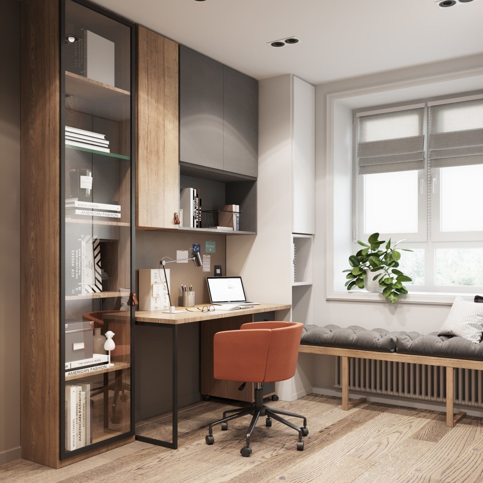Интерьер рабочей комнаты 9 кв.м с балконом