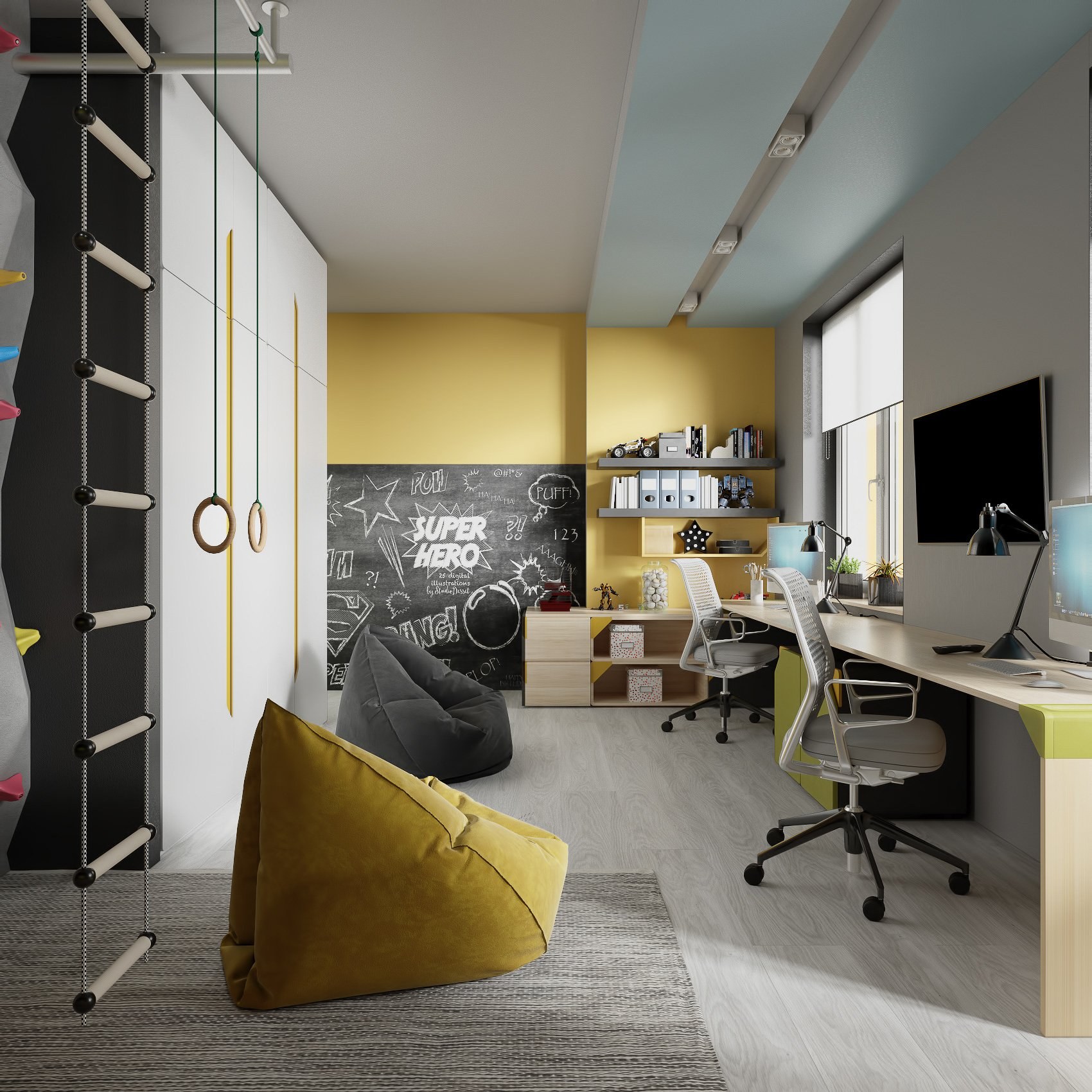 Рабочая зона для подростка в современном стиле в интерьере (56 фото)