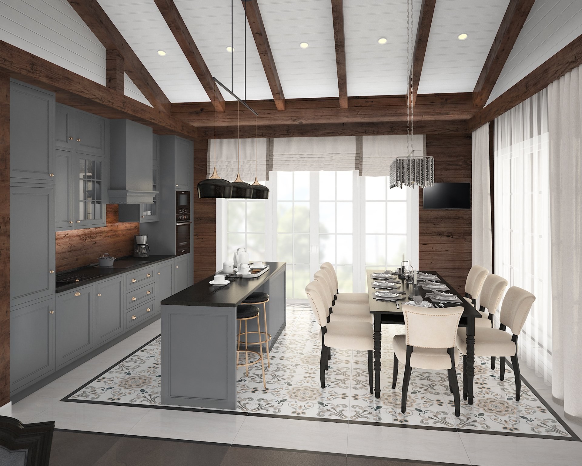 Интерьер кухни в стиле Прованс в доме из клееного бруса