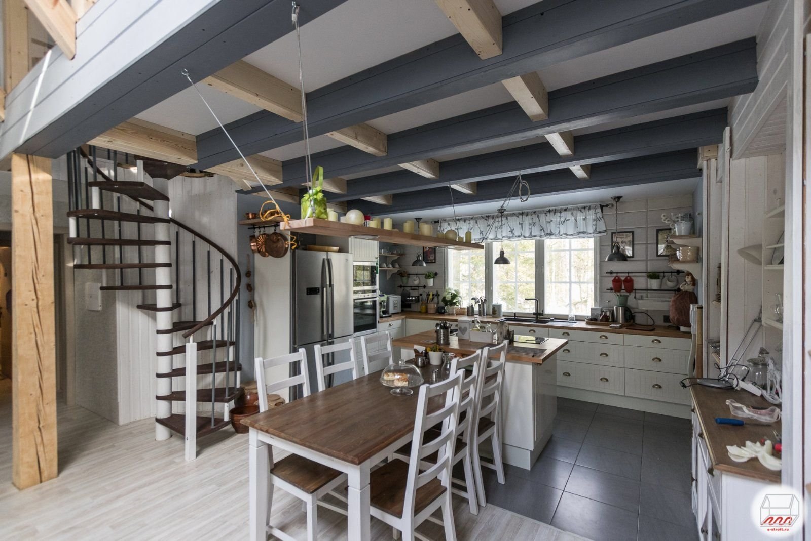 Кухня с балками на потолке интерьер
