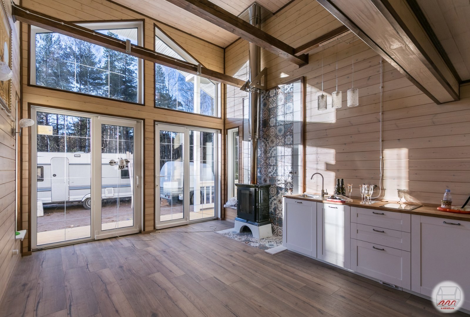 Дом из бруса с панорамными окнами