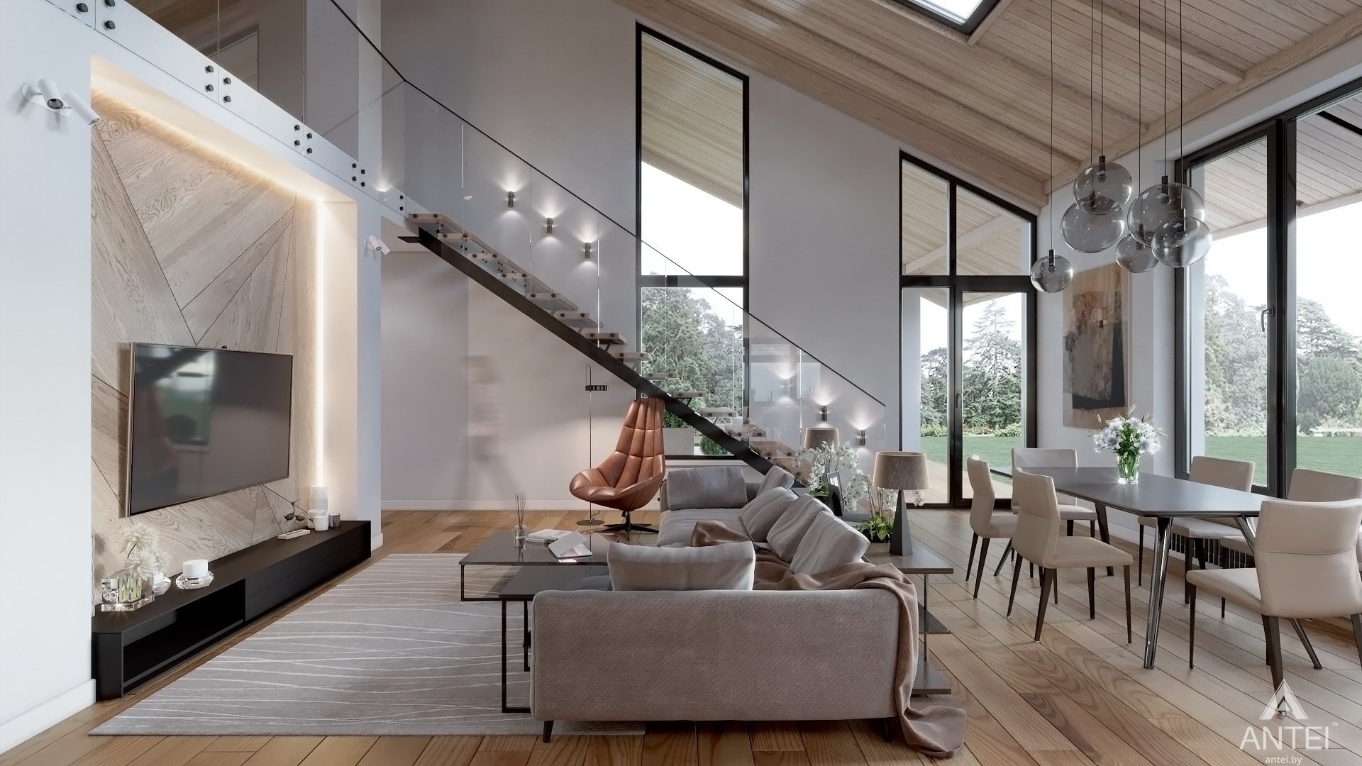 Гостиная в загородном доме в современном стиле