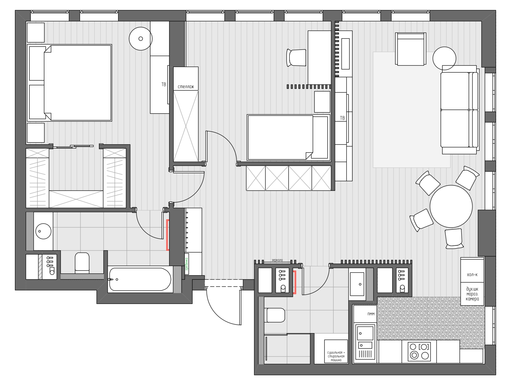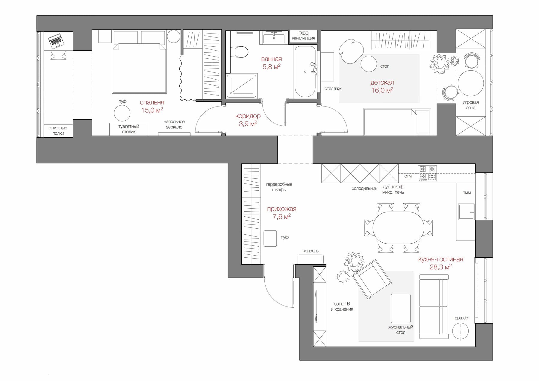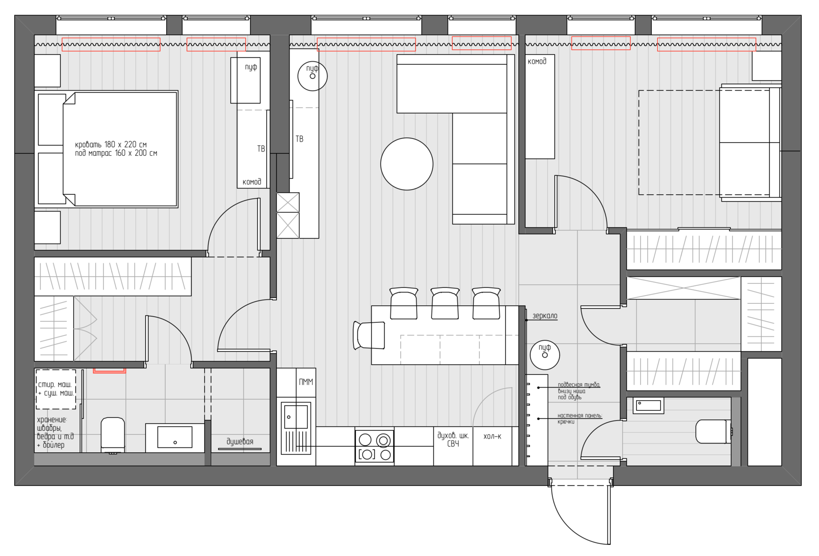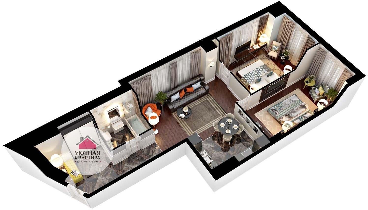 Дизайн проект трехкомнатной квартиры 80 кв.м