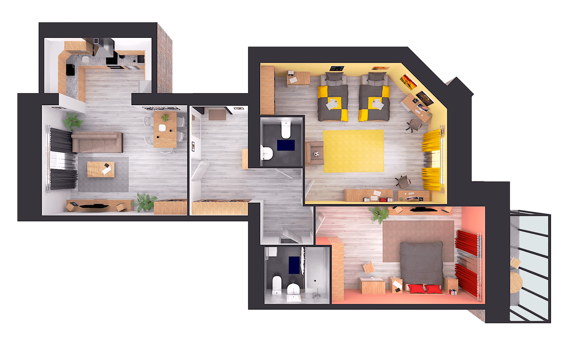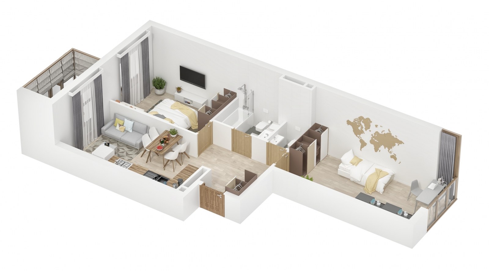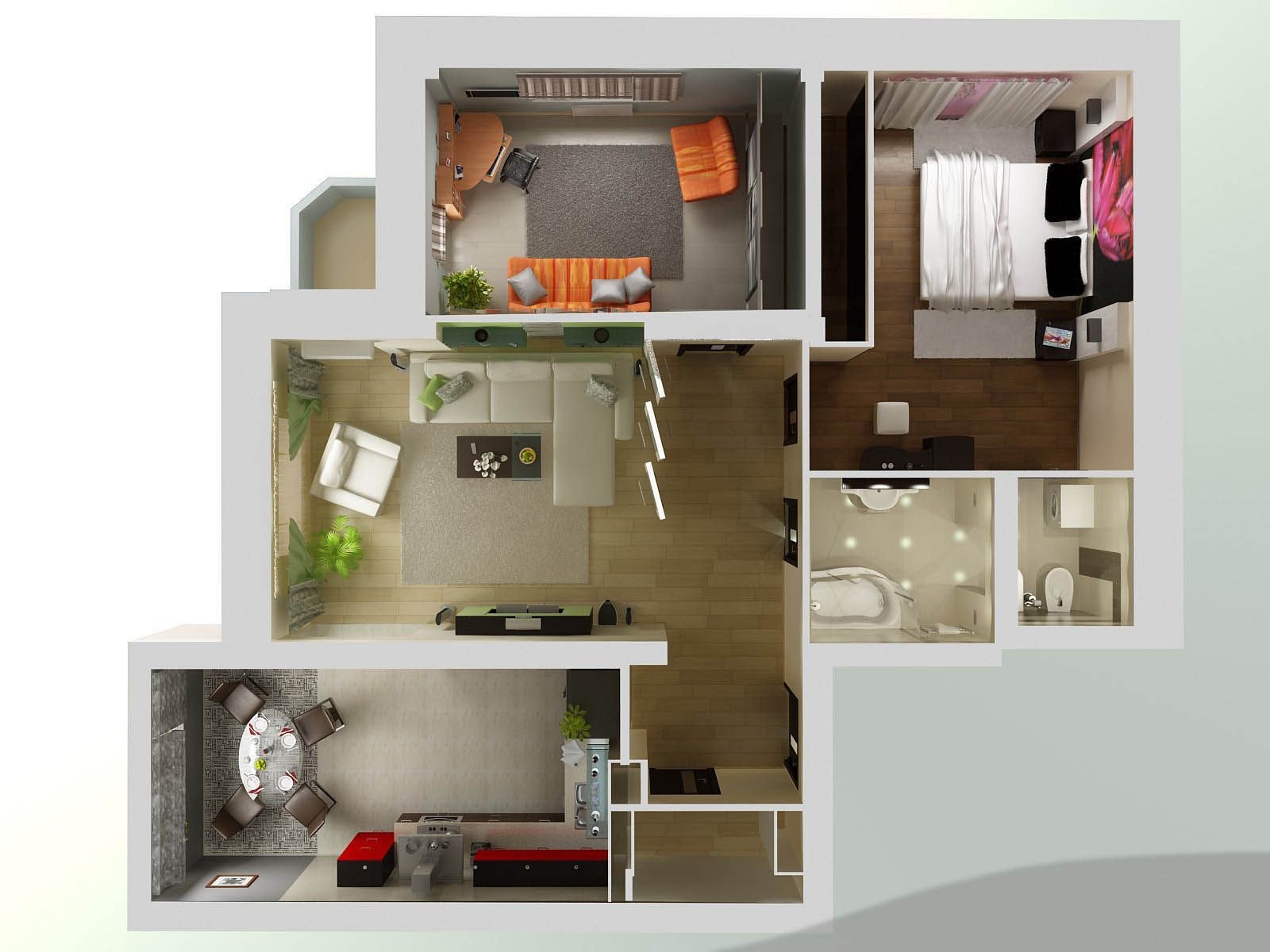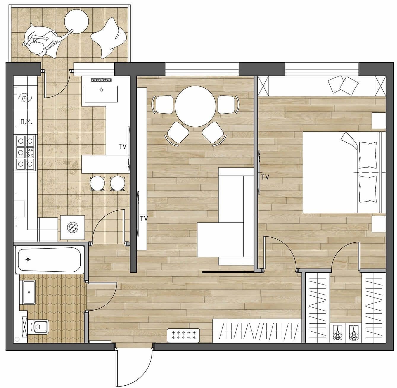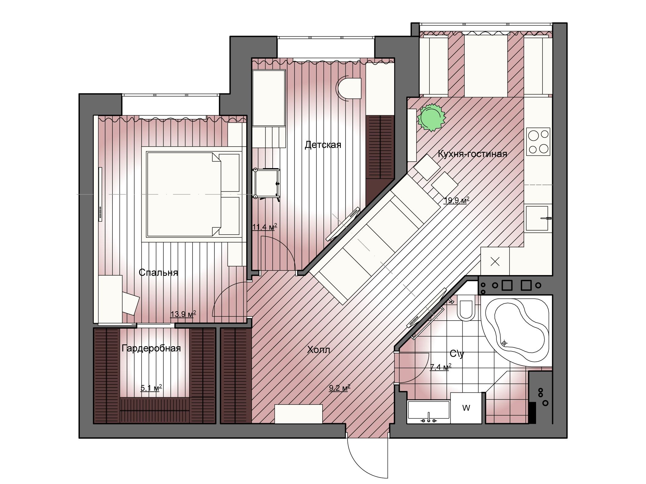 Дизайн проект трехкомнатной квартиры 80 кв.м