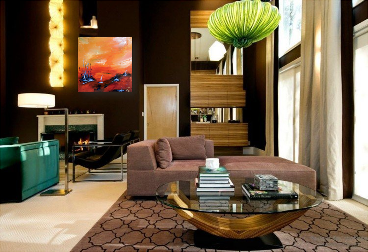 Сочетание зеленого и коричневого в интерьере