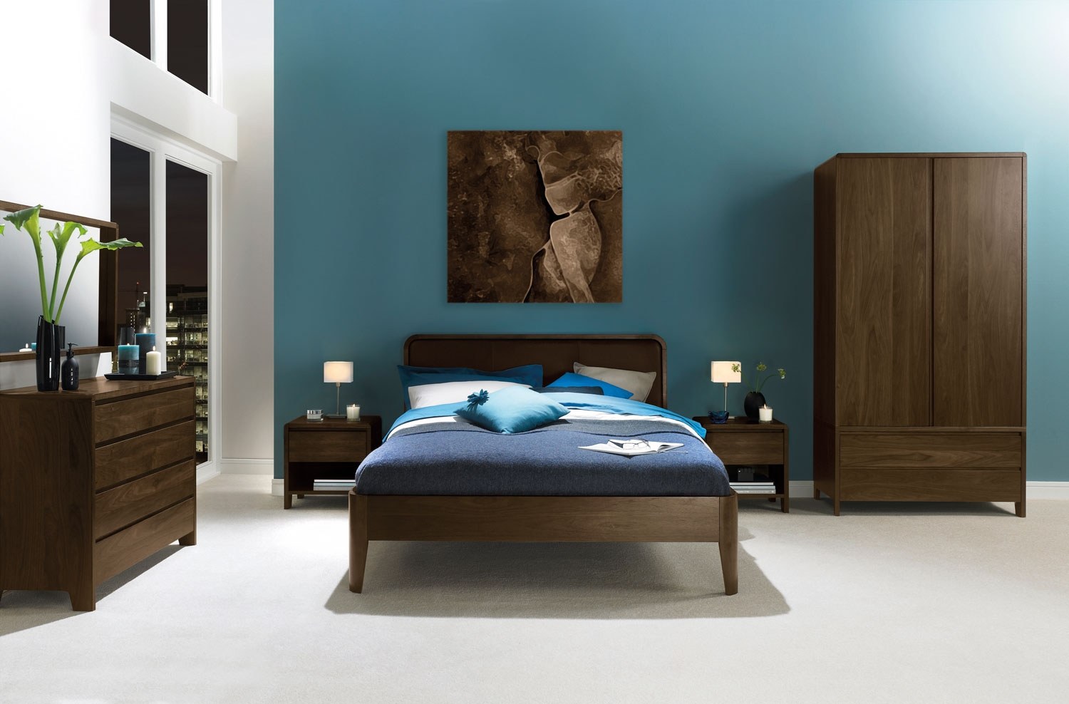 Синие стены в спальне