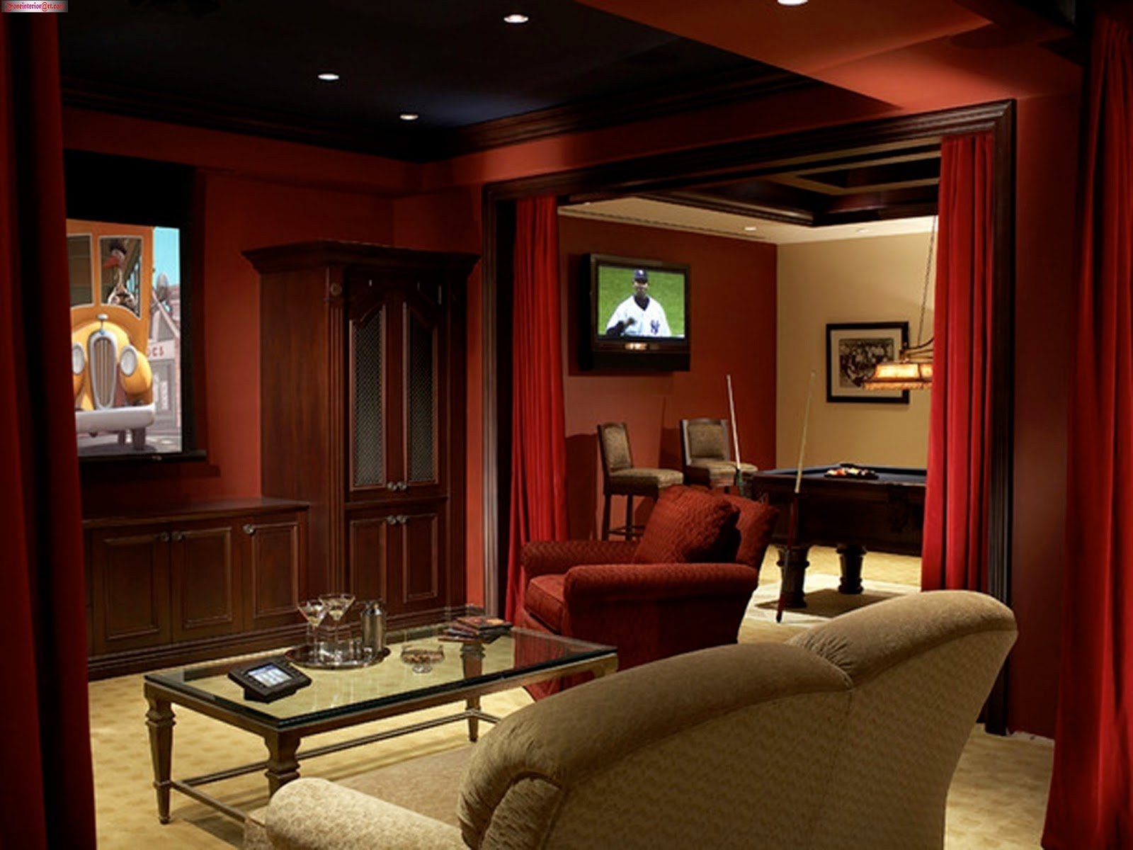 Гостиная в бордовом цвете