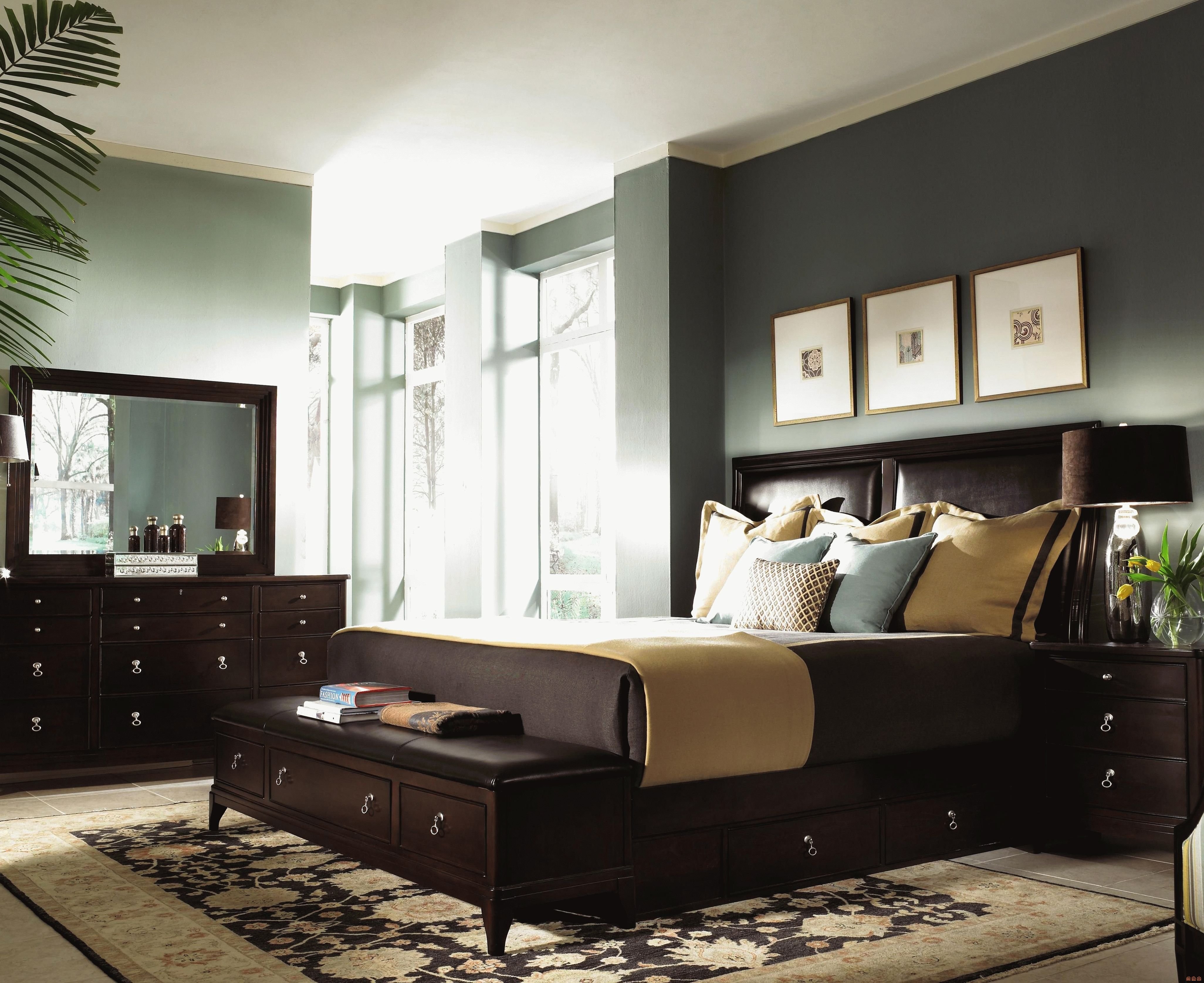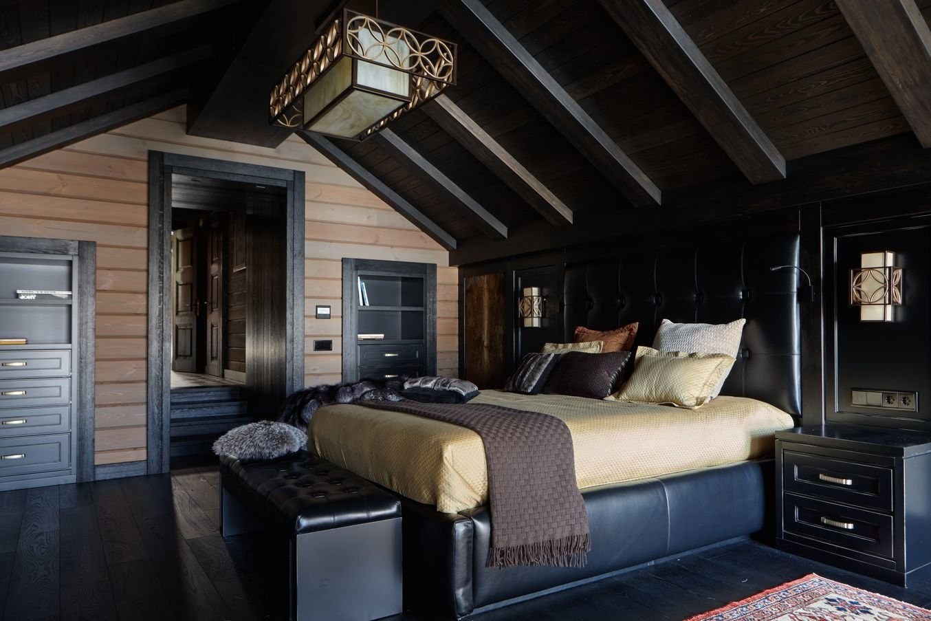 Спальня с темной мебелью