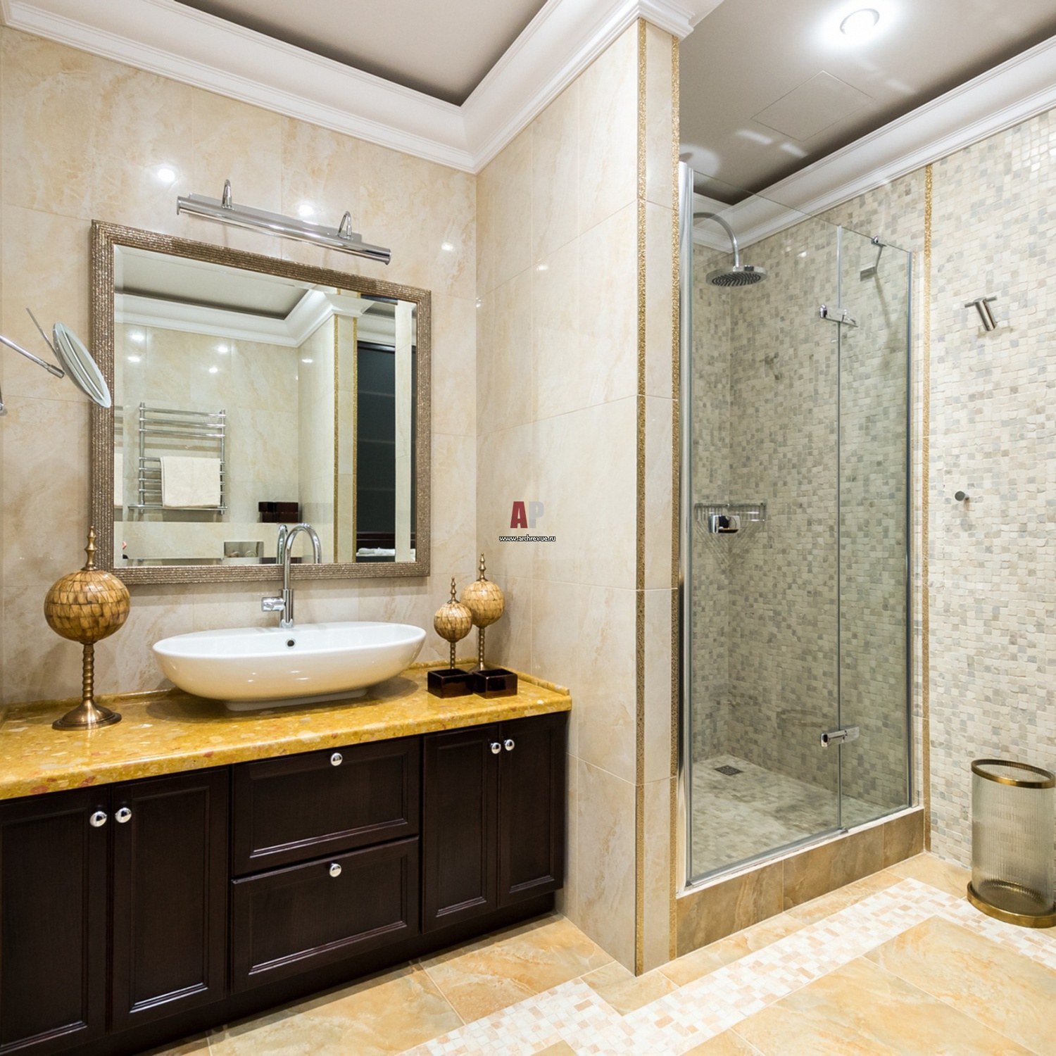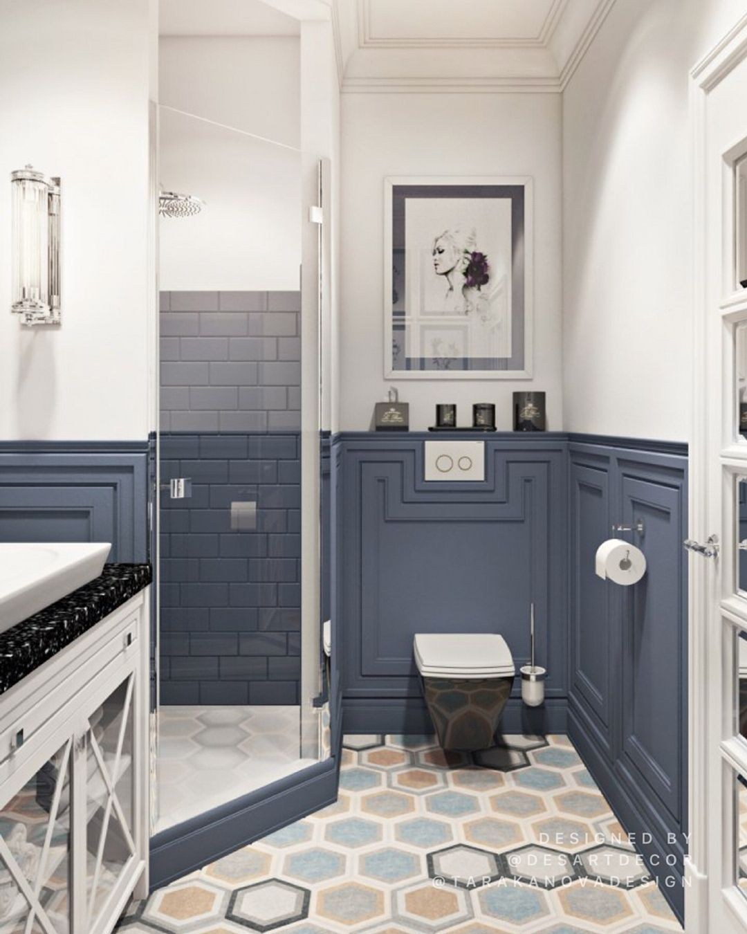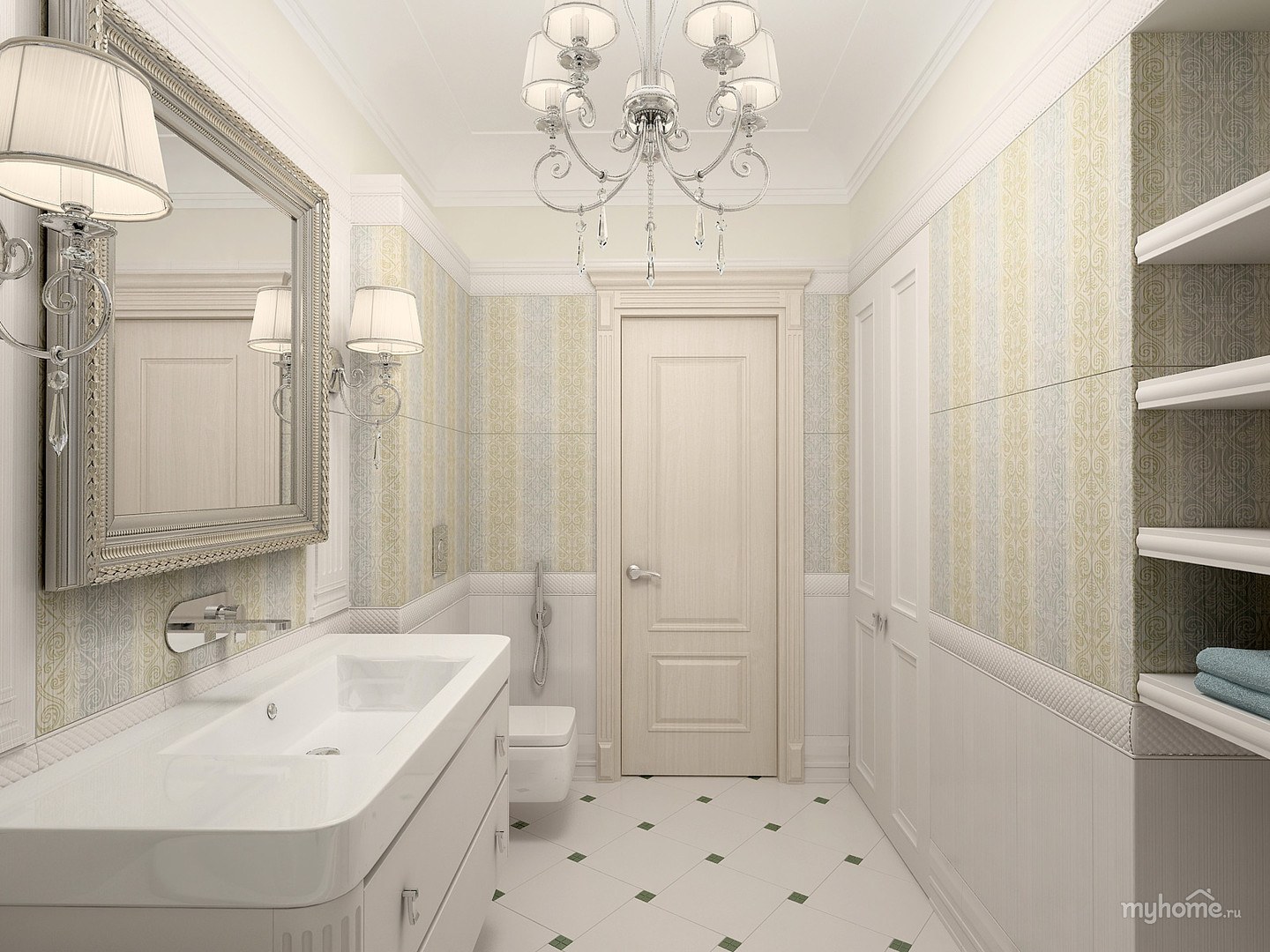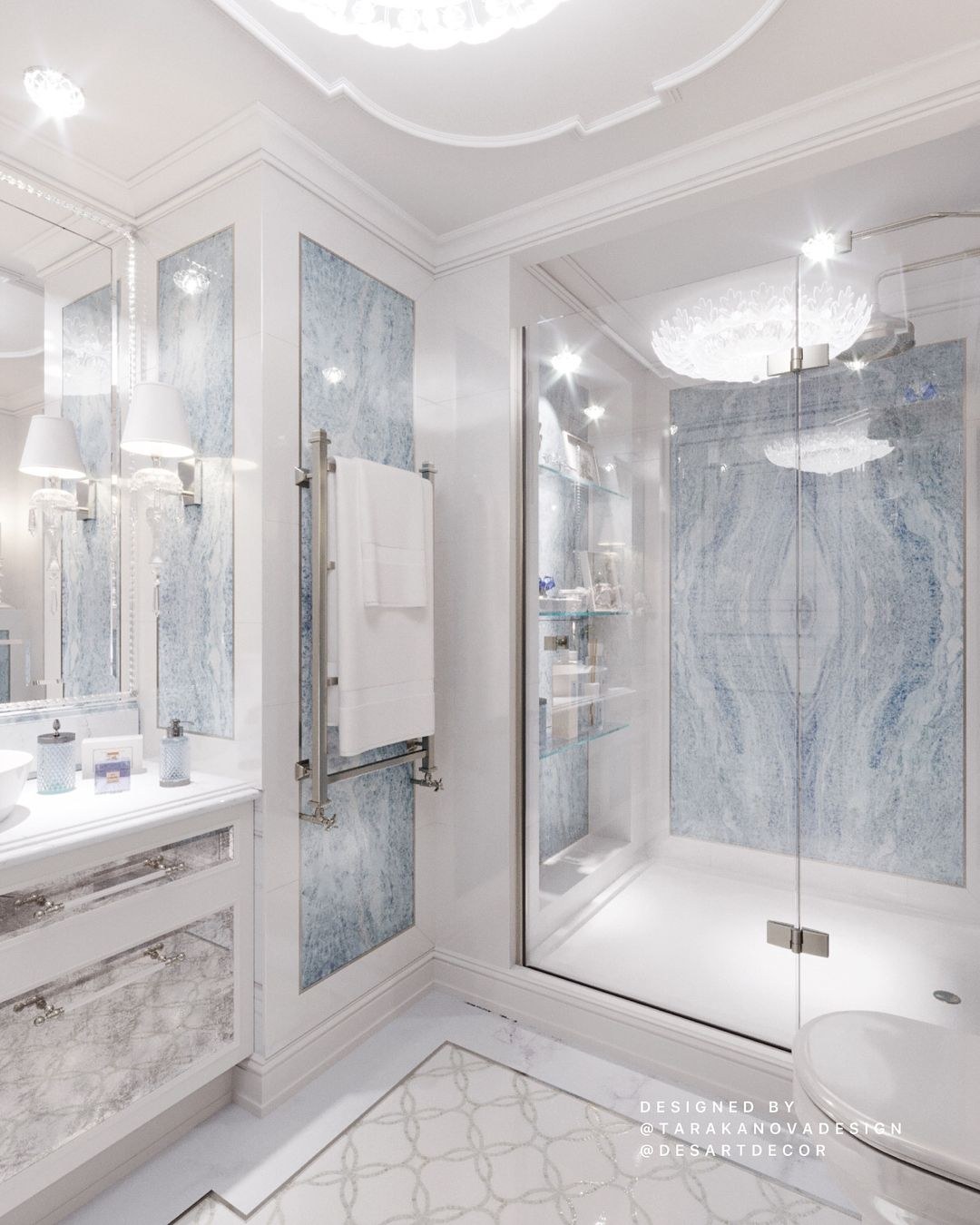 Санузел с душевой неоклассика в интерьере (48 фото)
