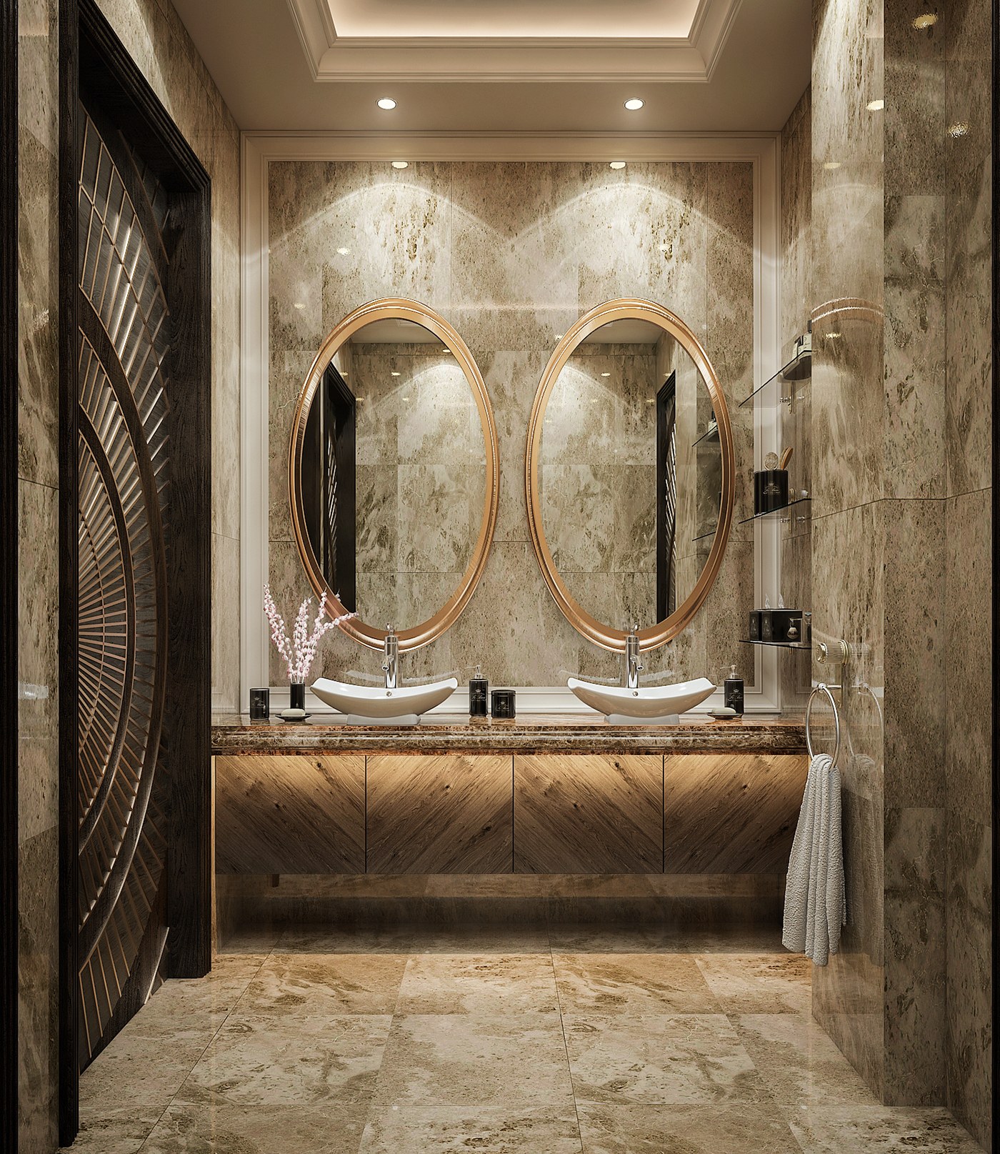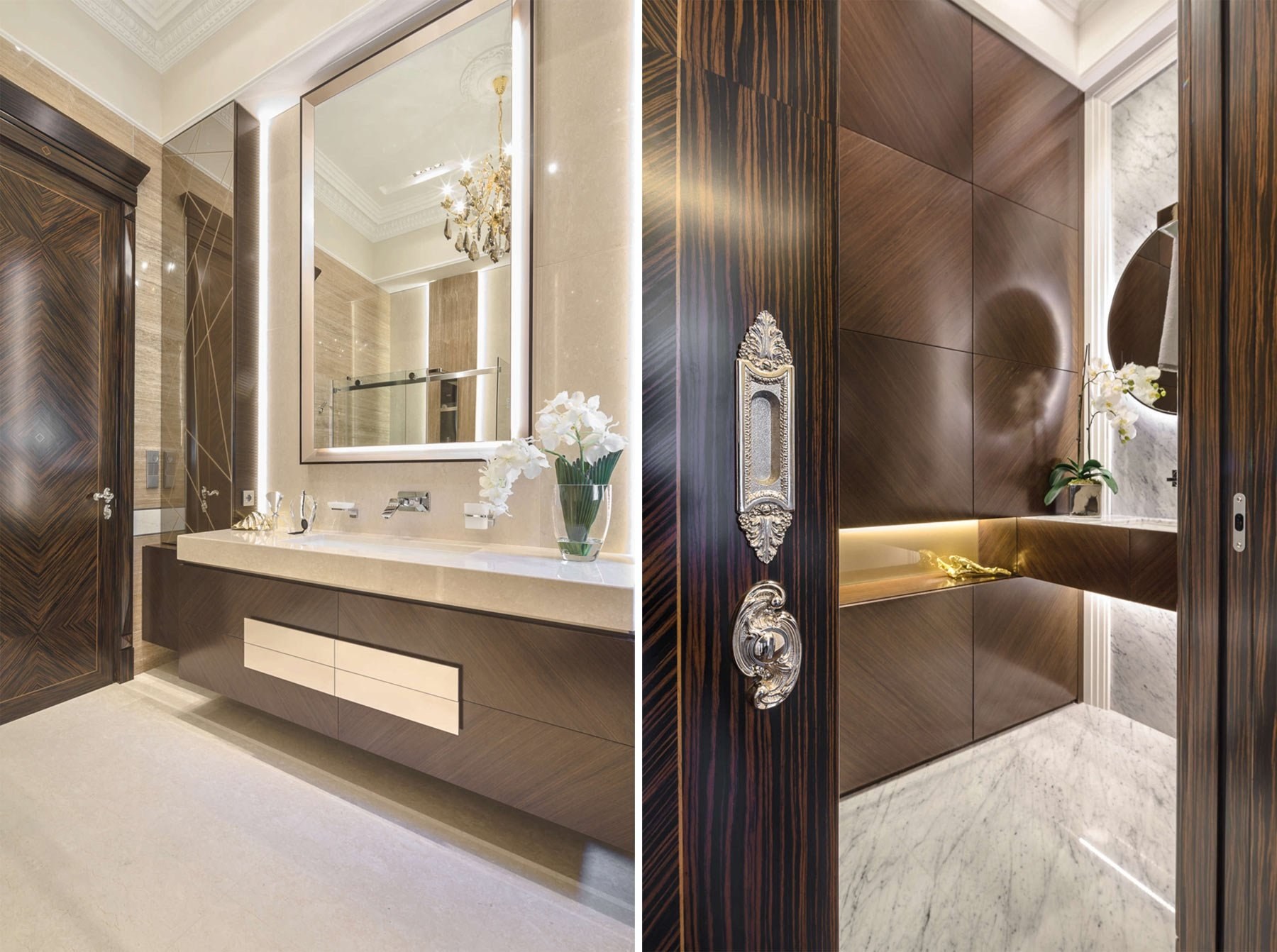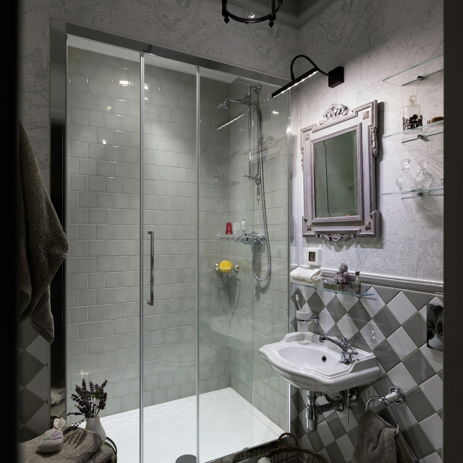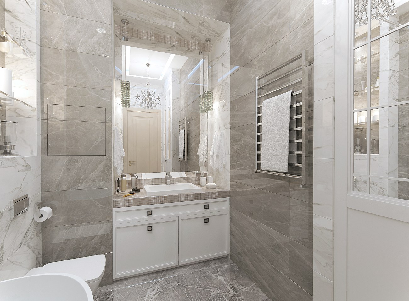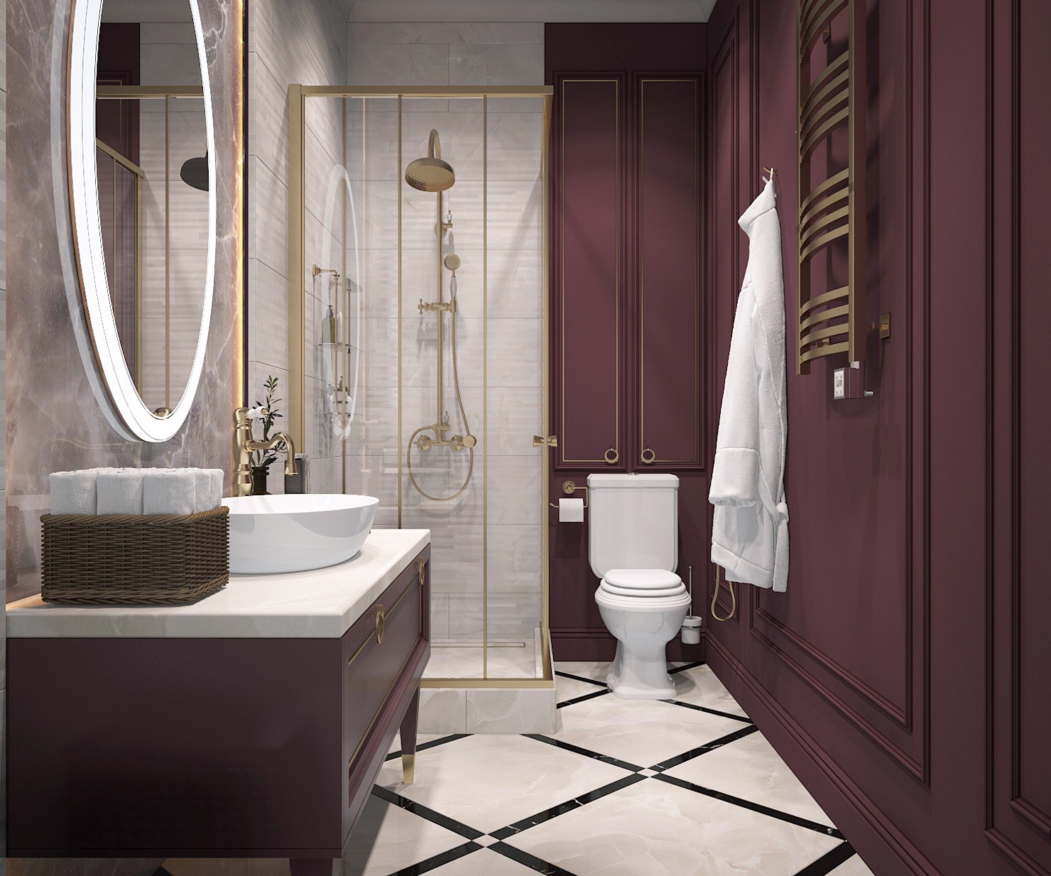Санузел с душевой неоклассика в интерьере (48 фото)