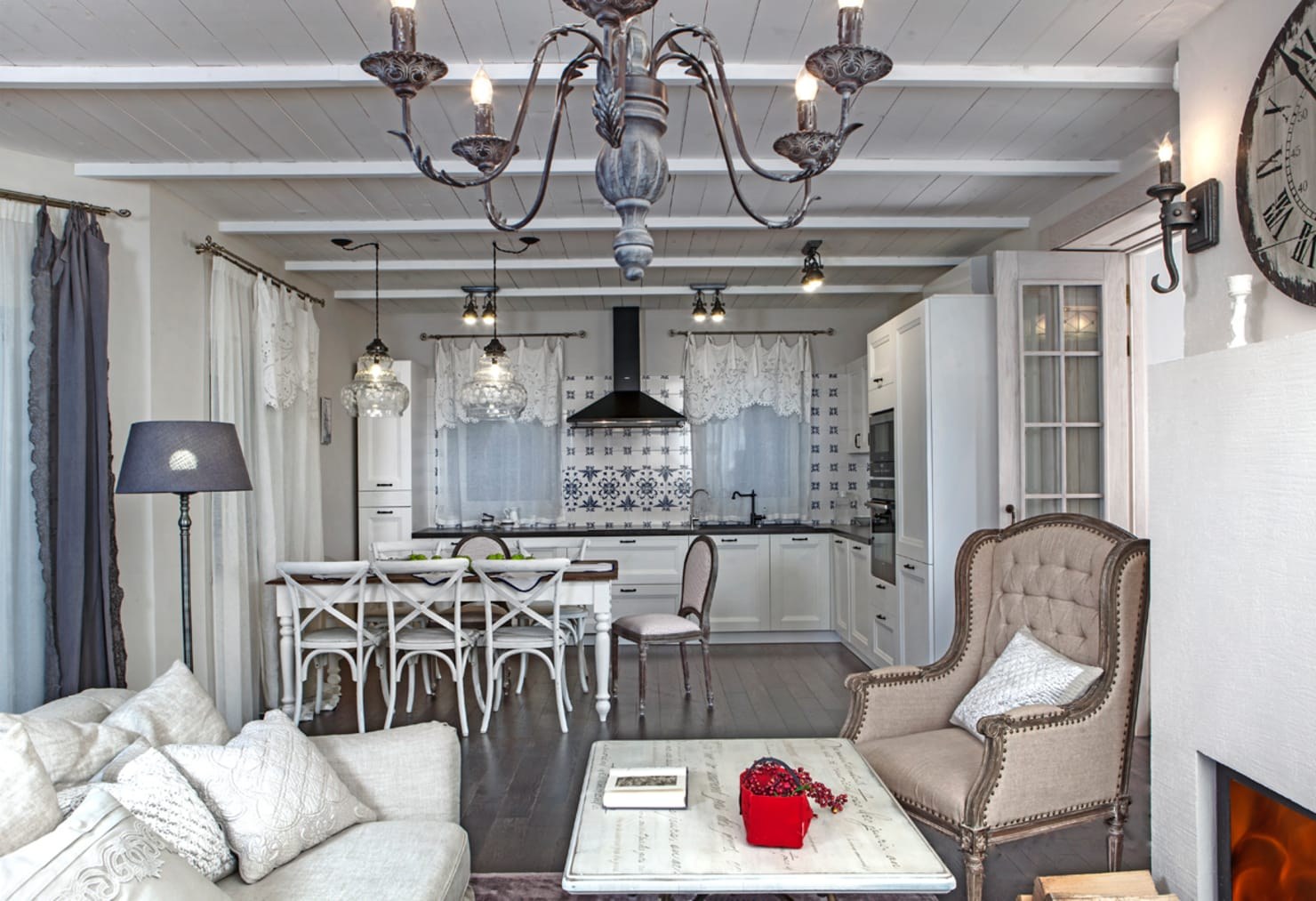 Кухня-столовая 20 кв.м в прованском стиле