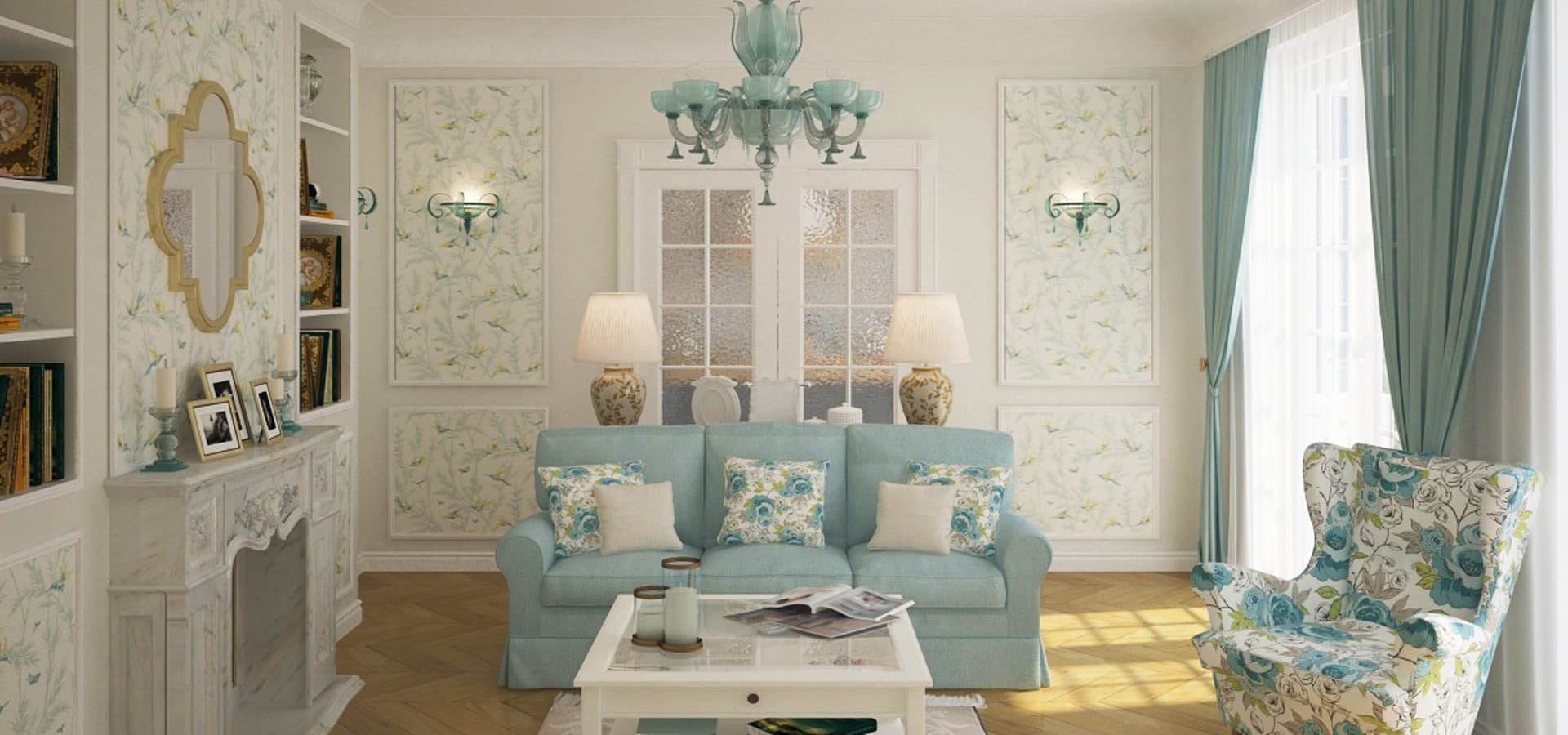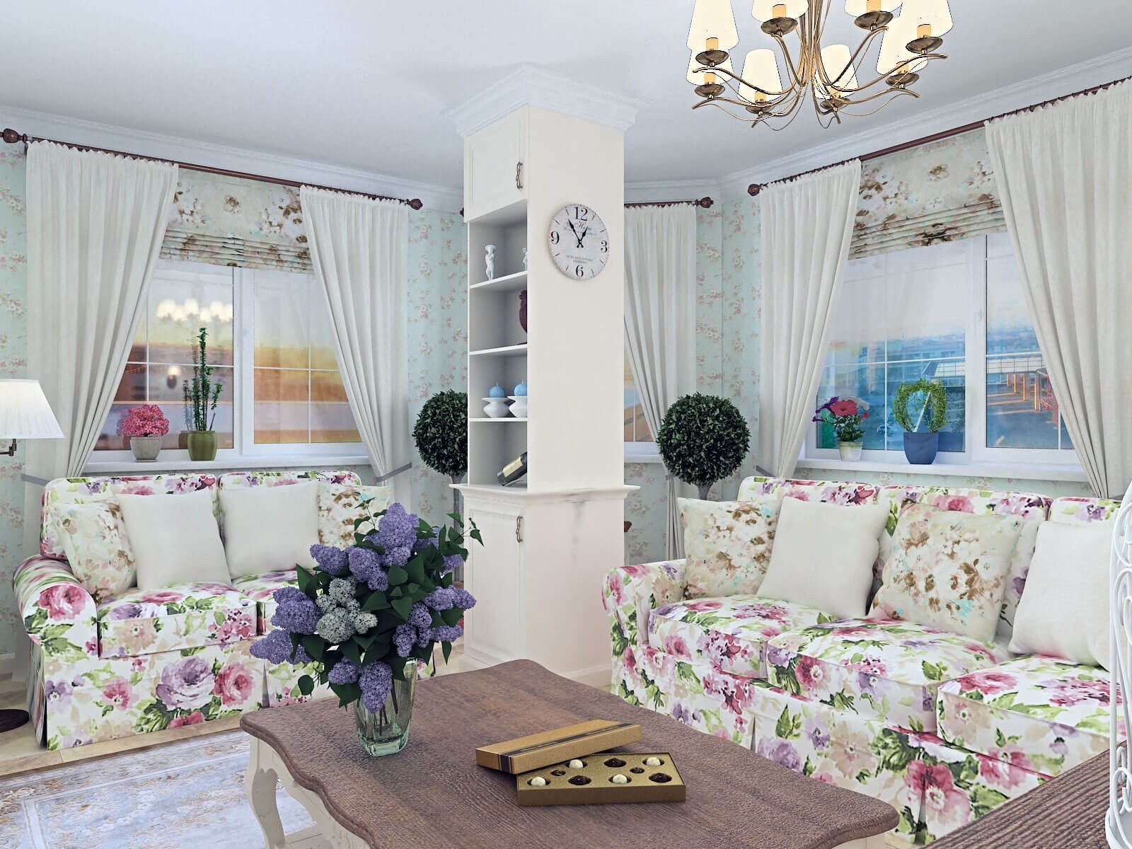 Узкая гостиная в стиле Прованс