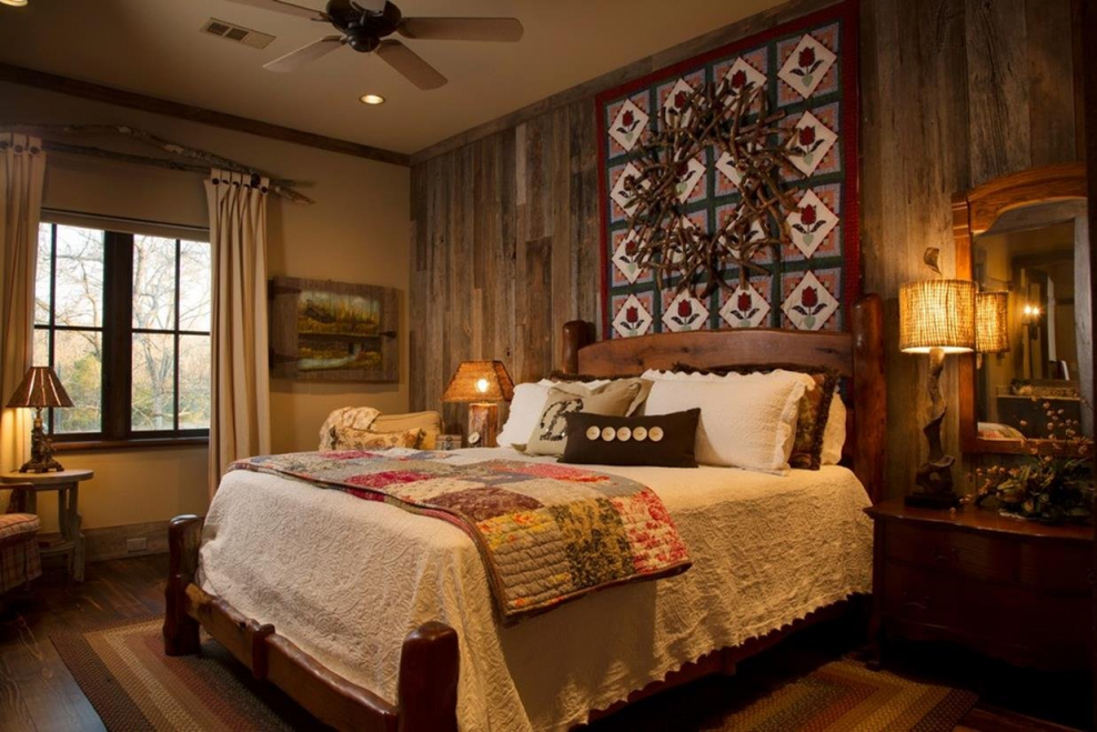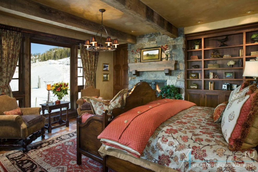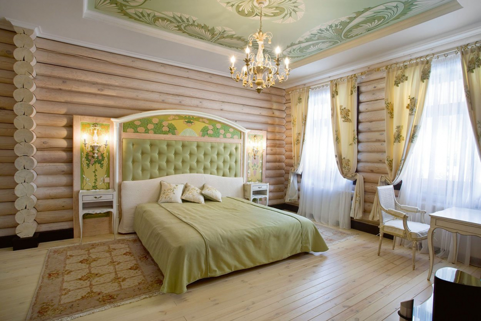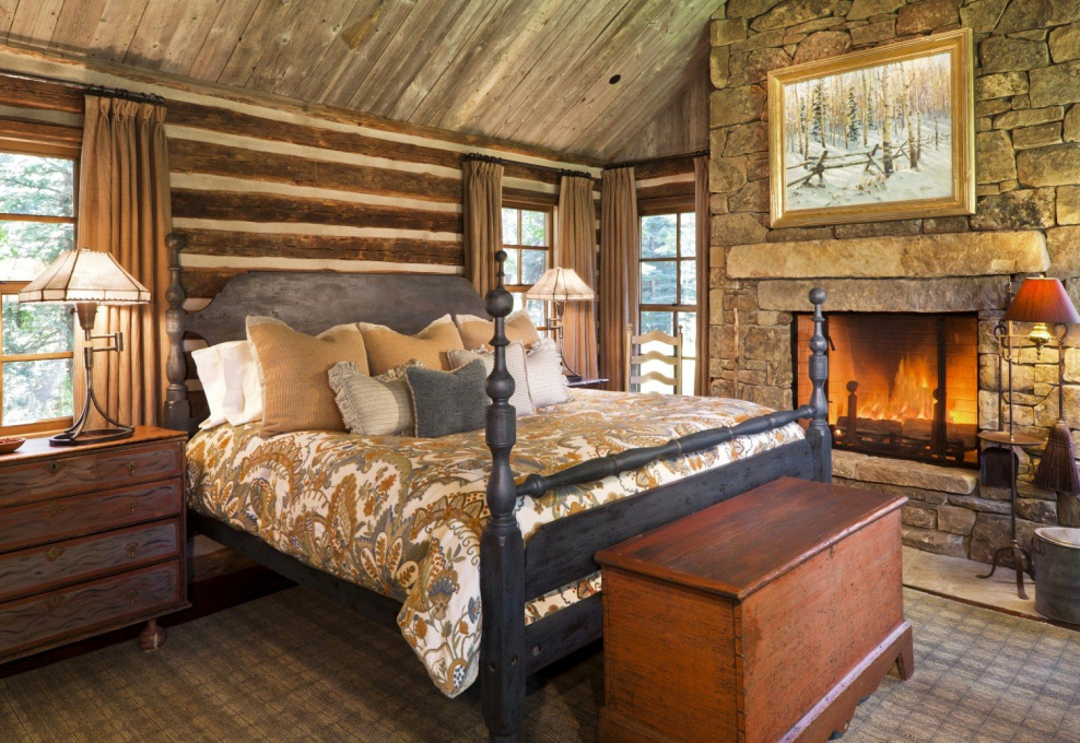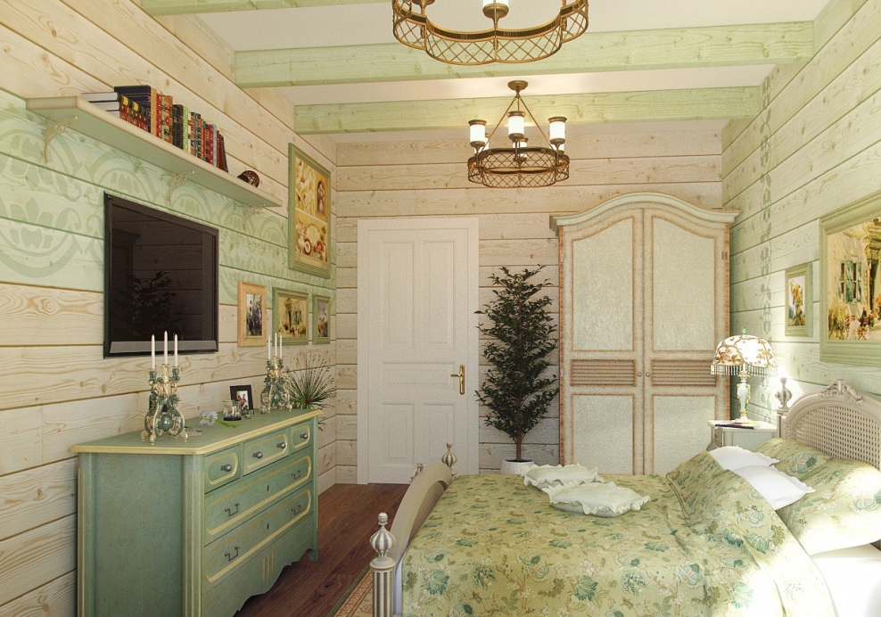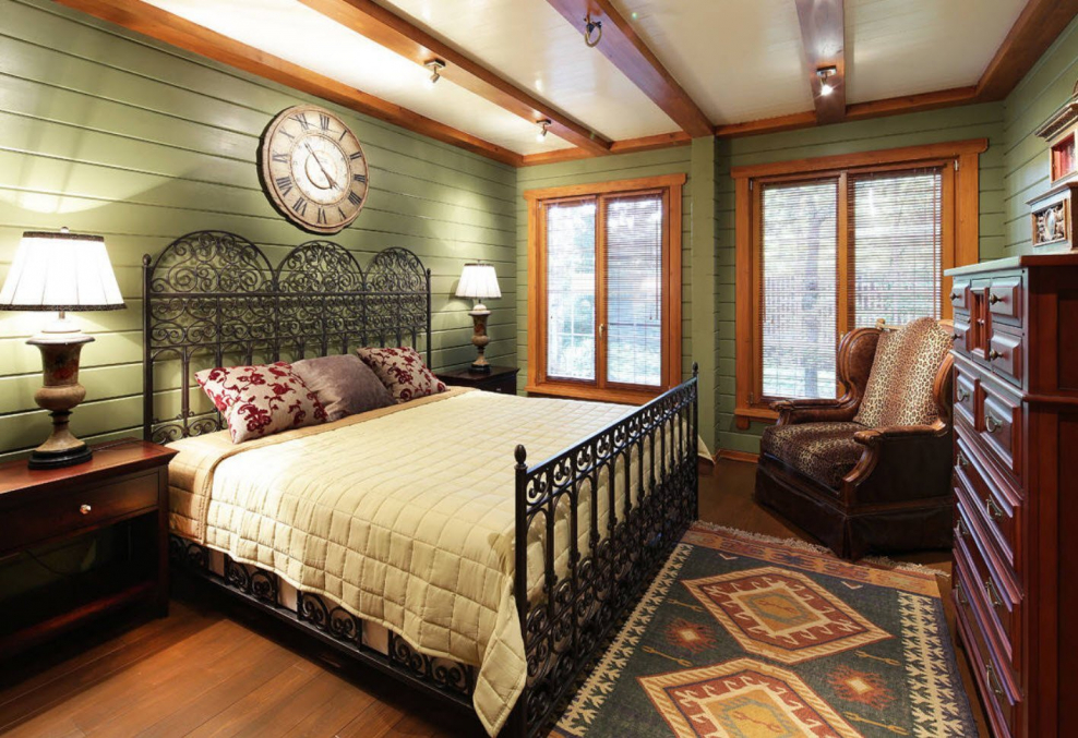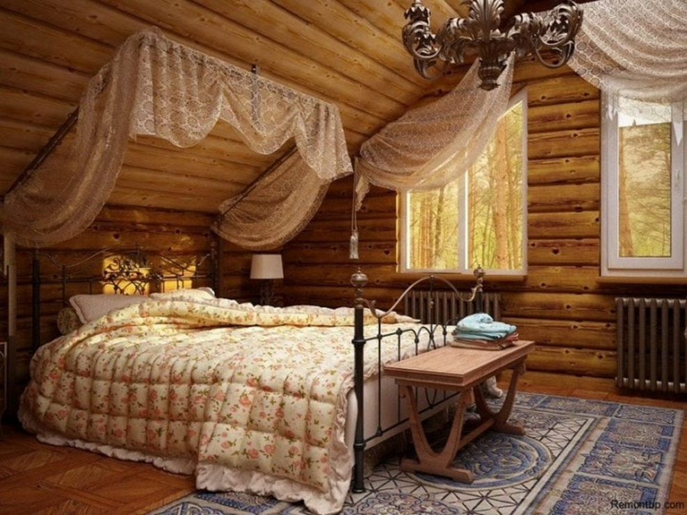 Спальни в бревенчатом доме в стиле Кантри,Прованс