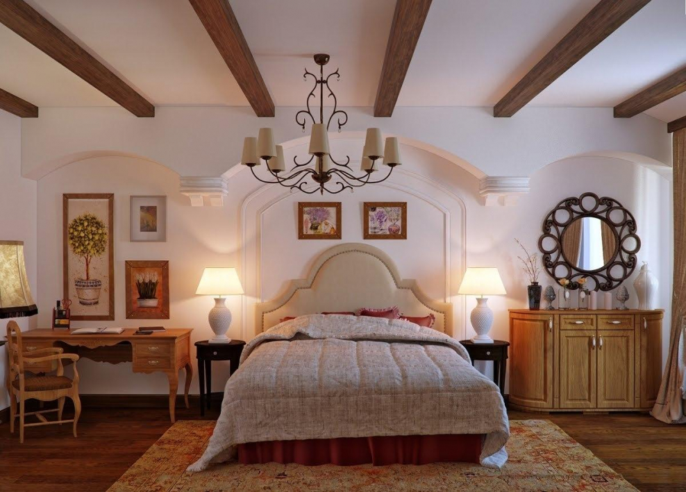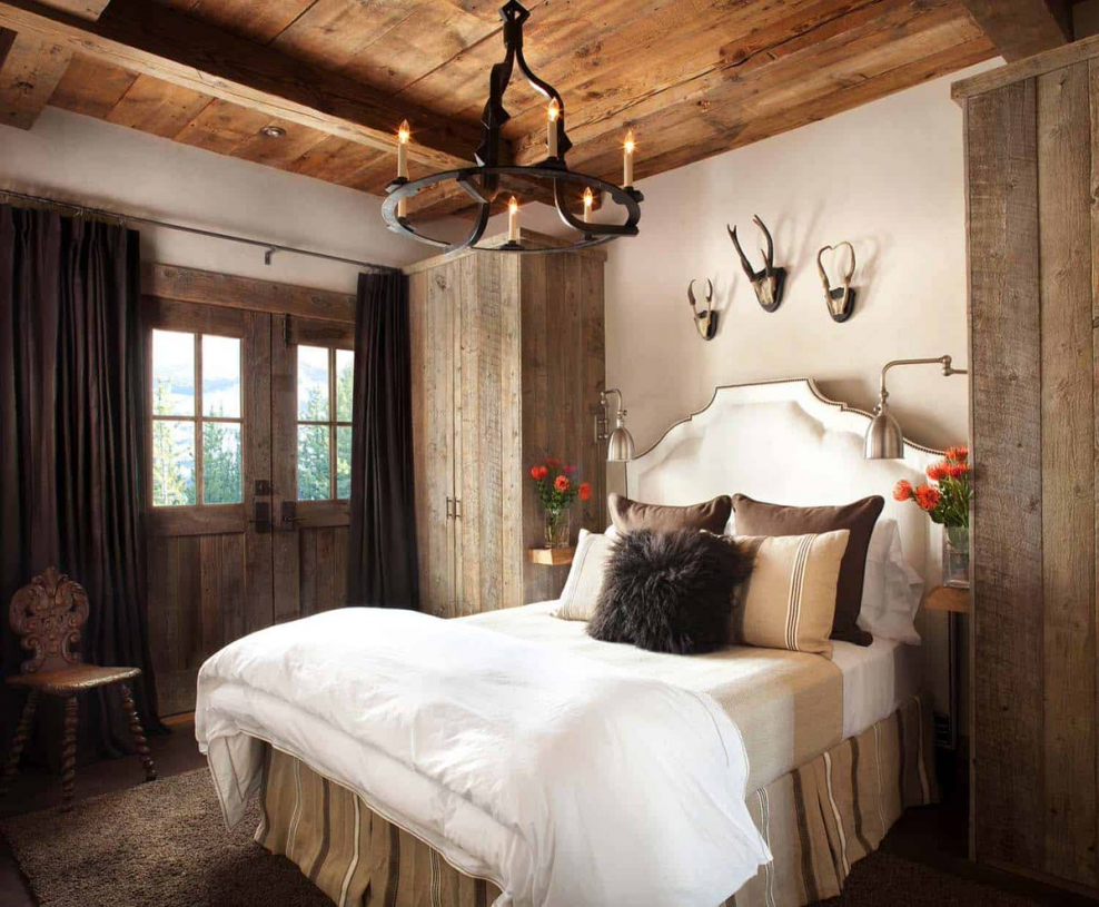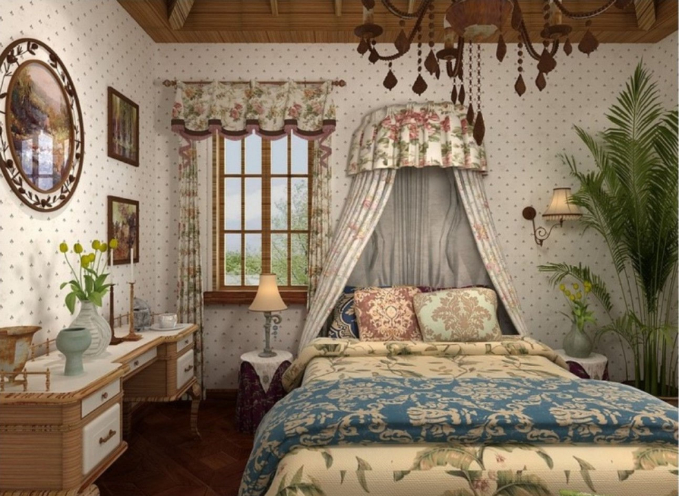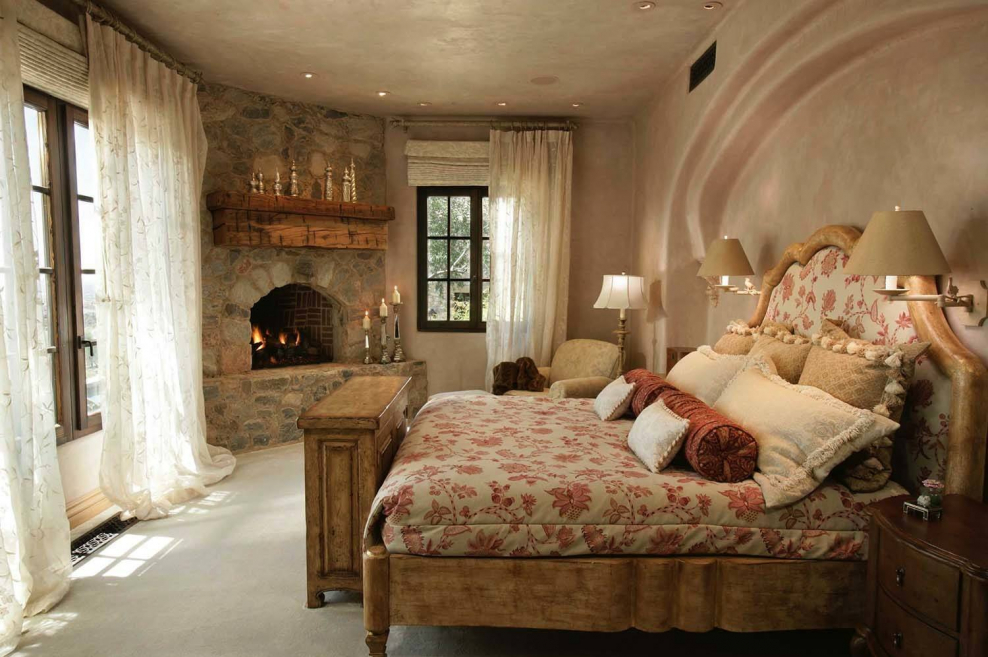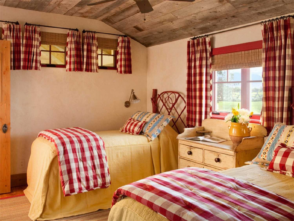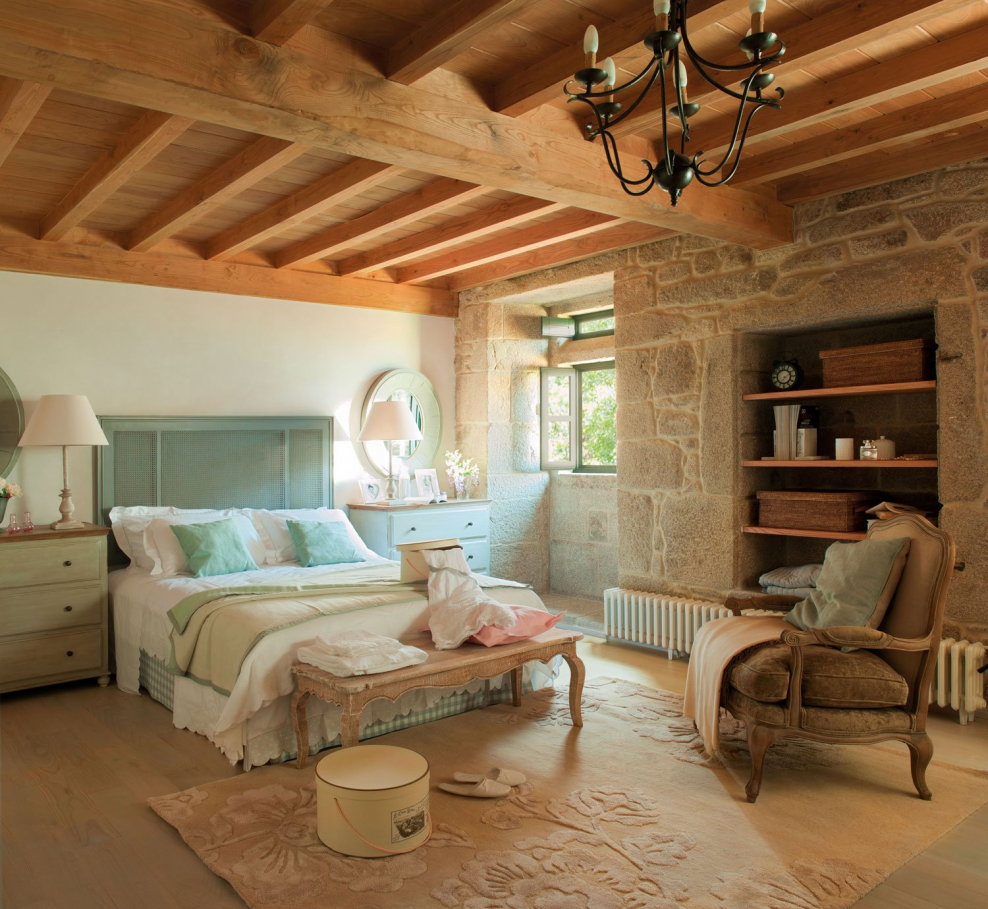 Спальни в бревенчатом доме в стиле Кантри,Прованс