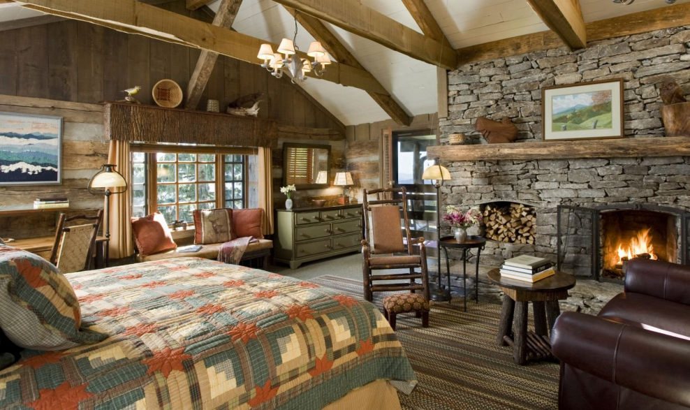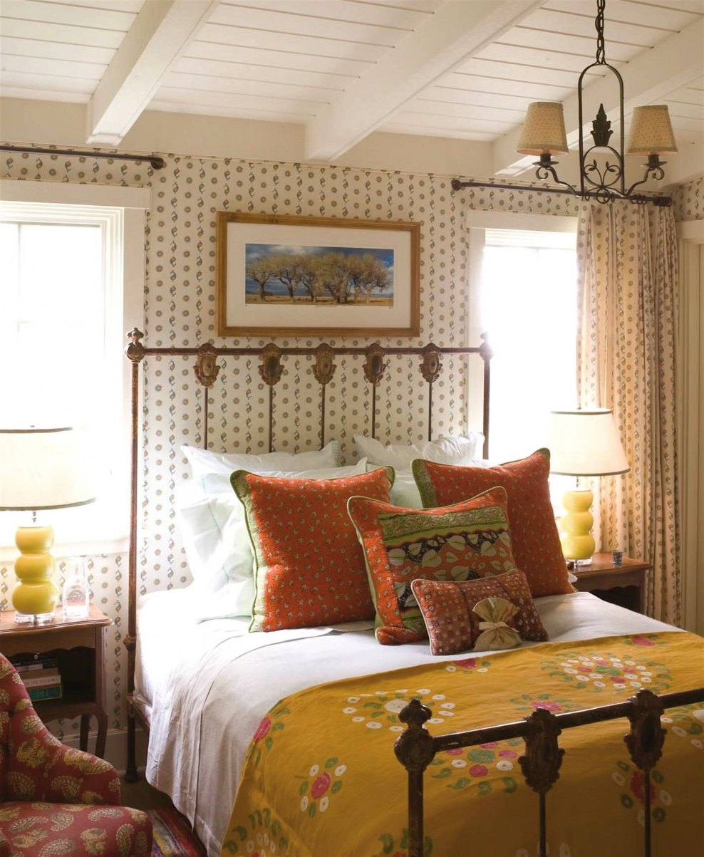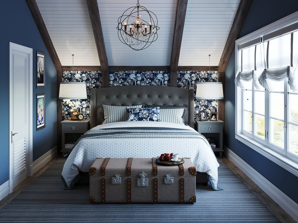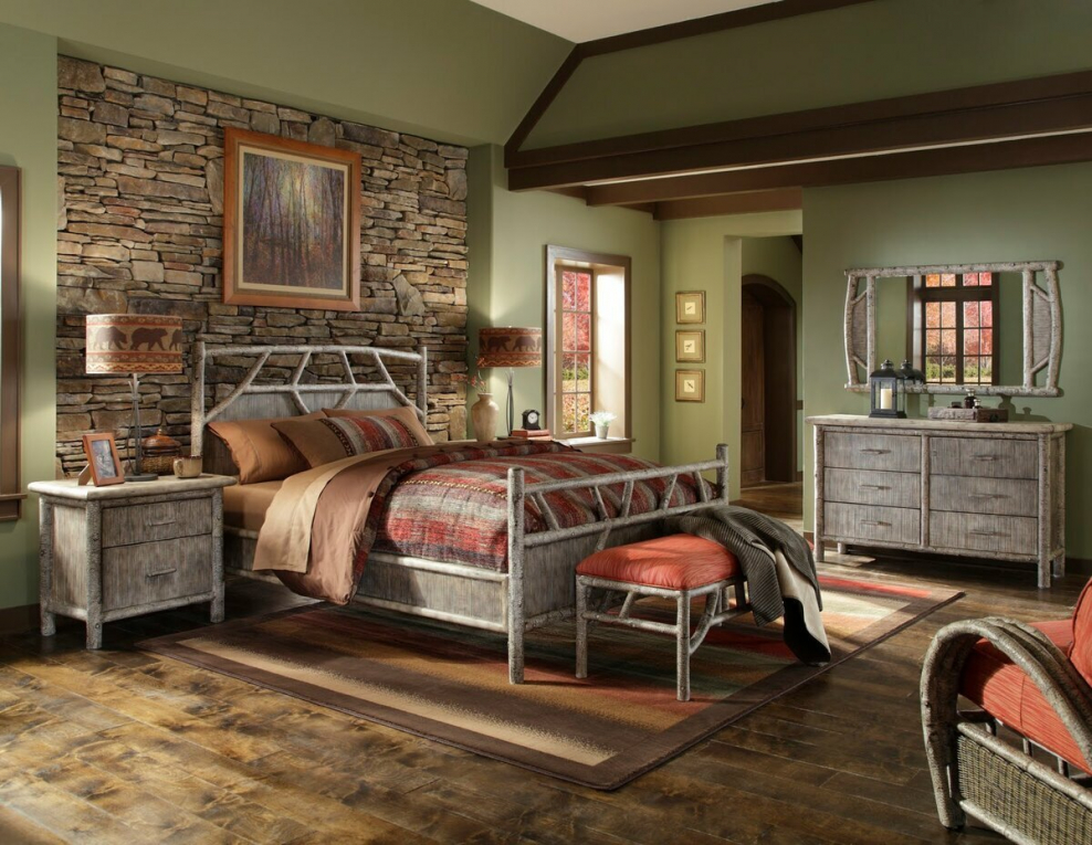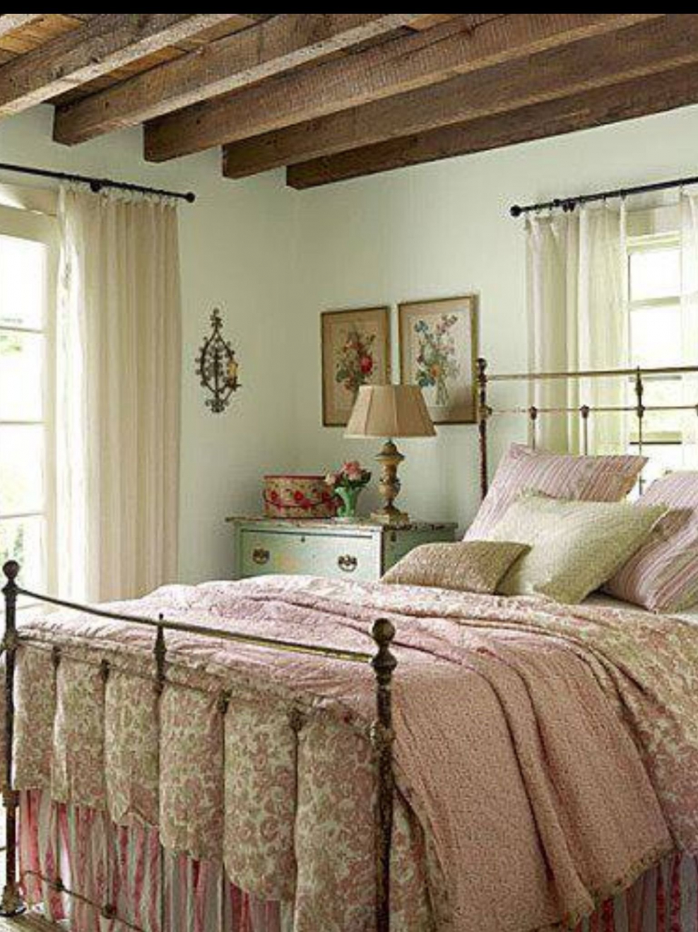 Спальни в бревенчатом доме в стиле Кантри,Прованс