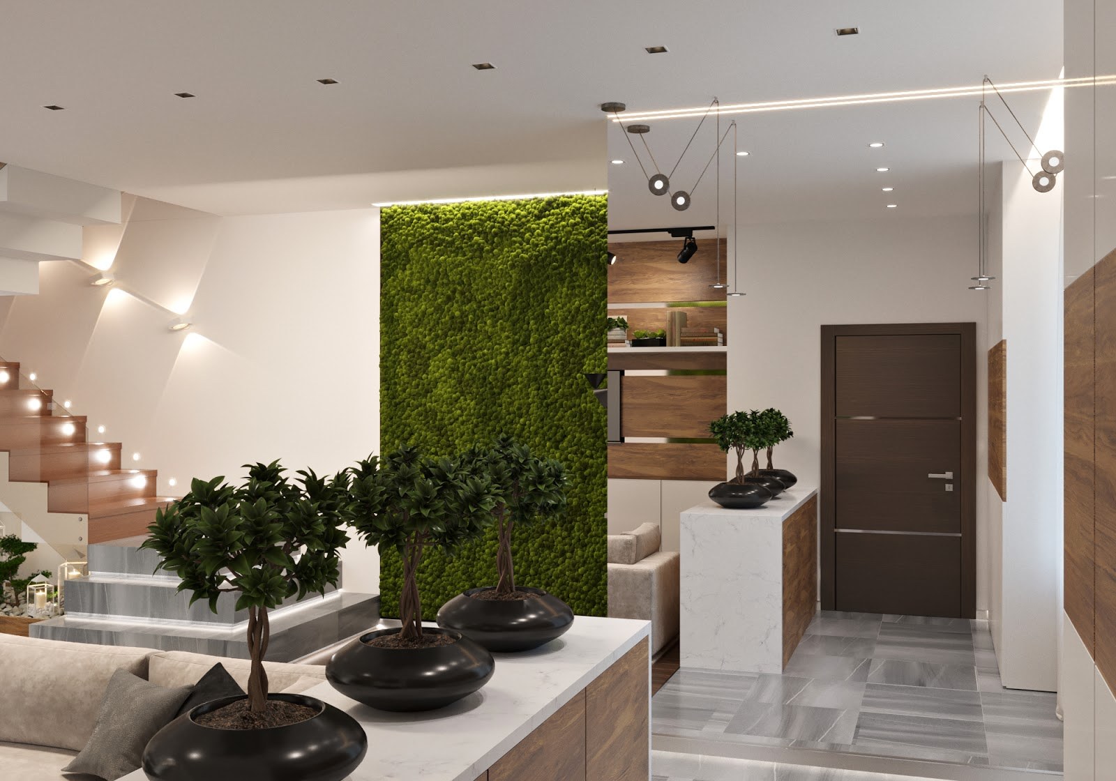 Экостиль в гостиной с фитостеной