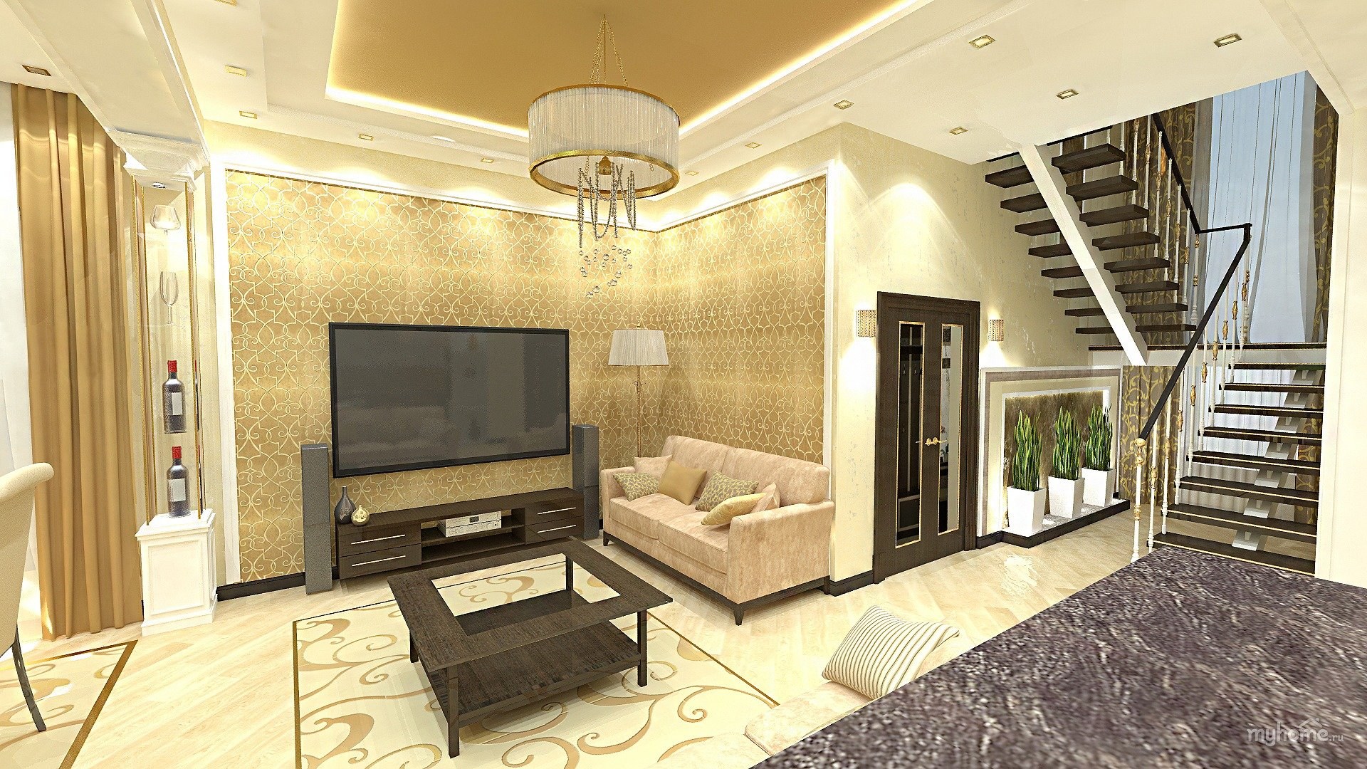 Проект гостиной с лестницей