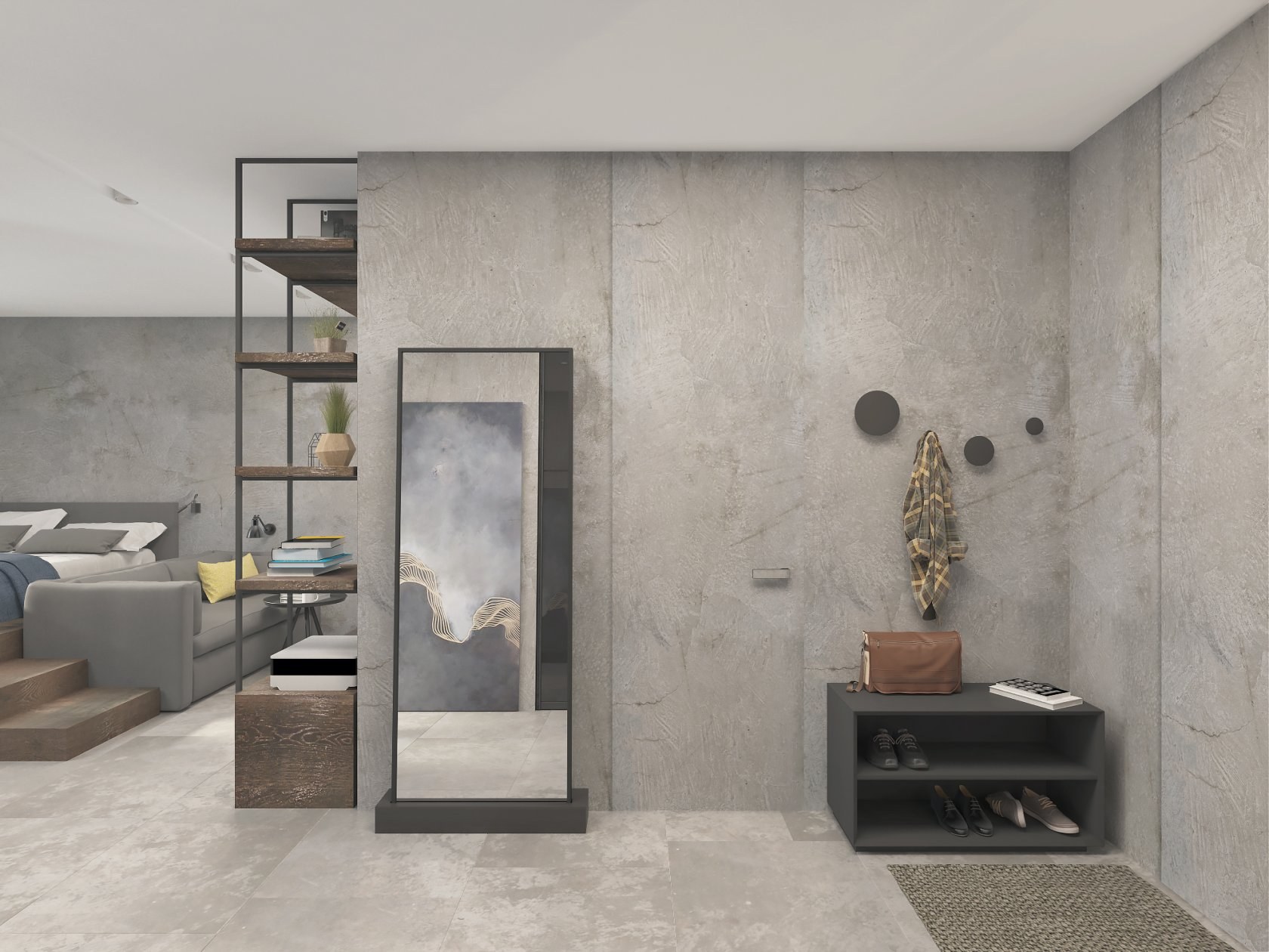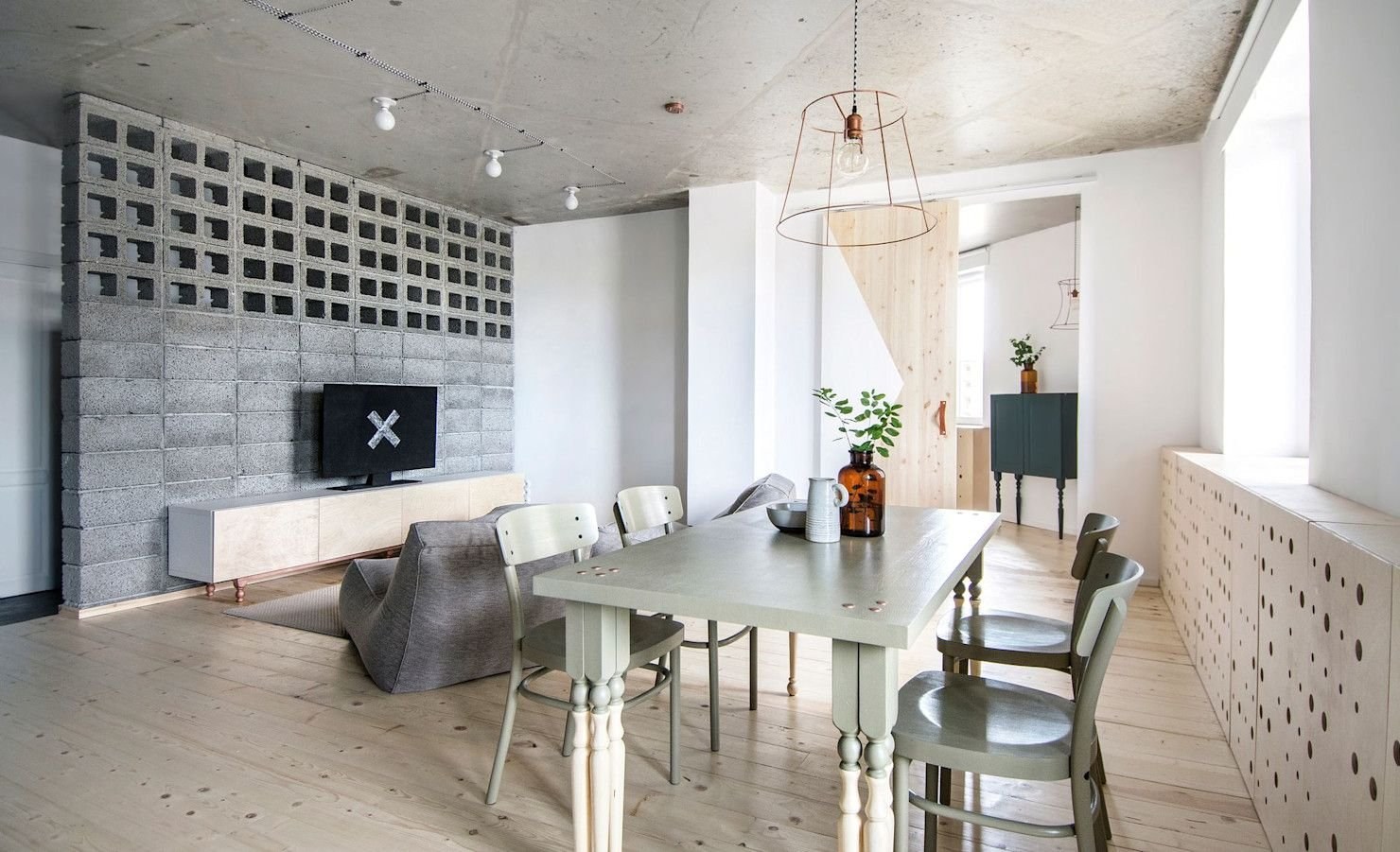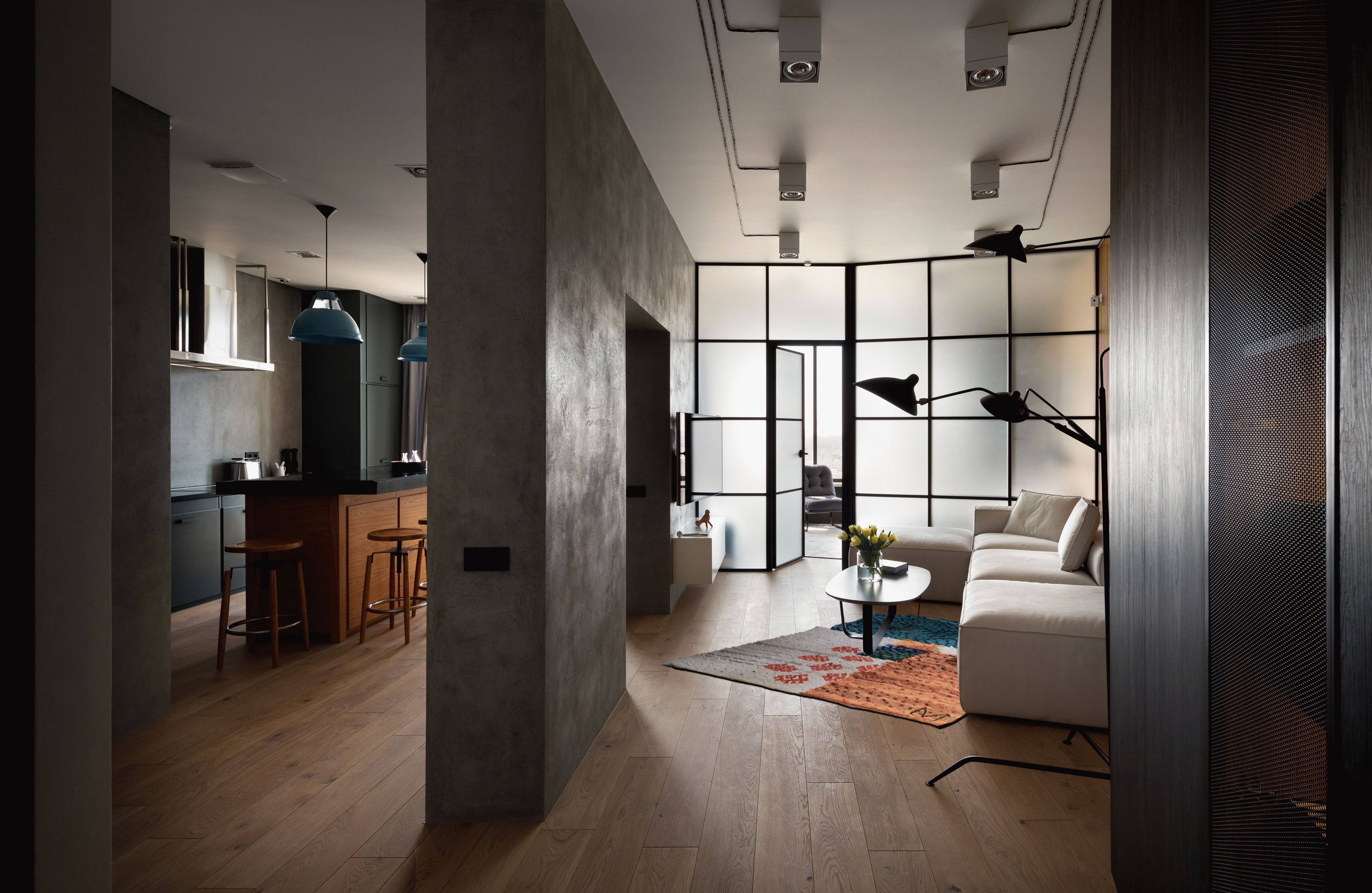 Бетон и дерево в интерьере квартиры