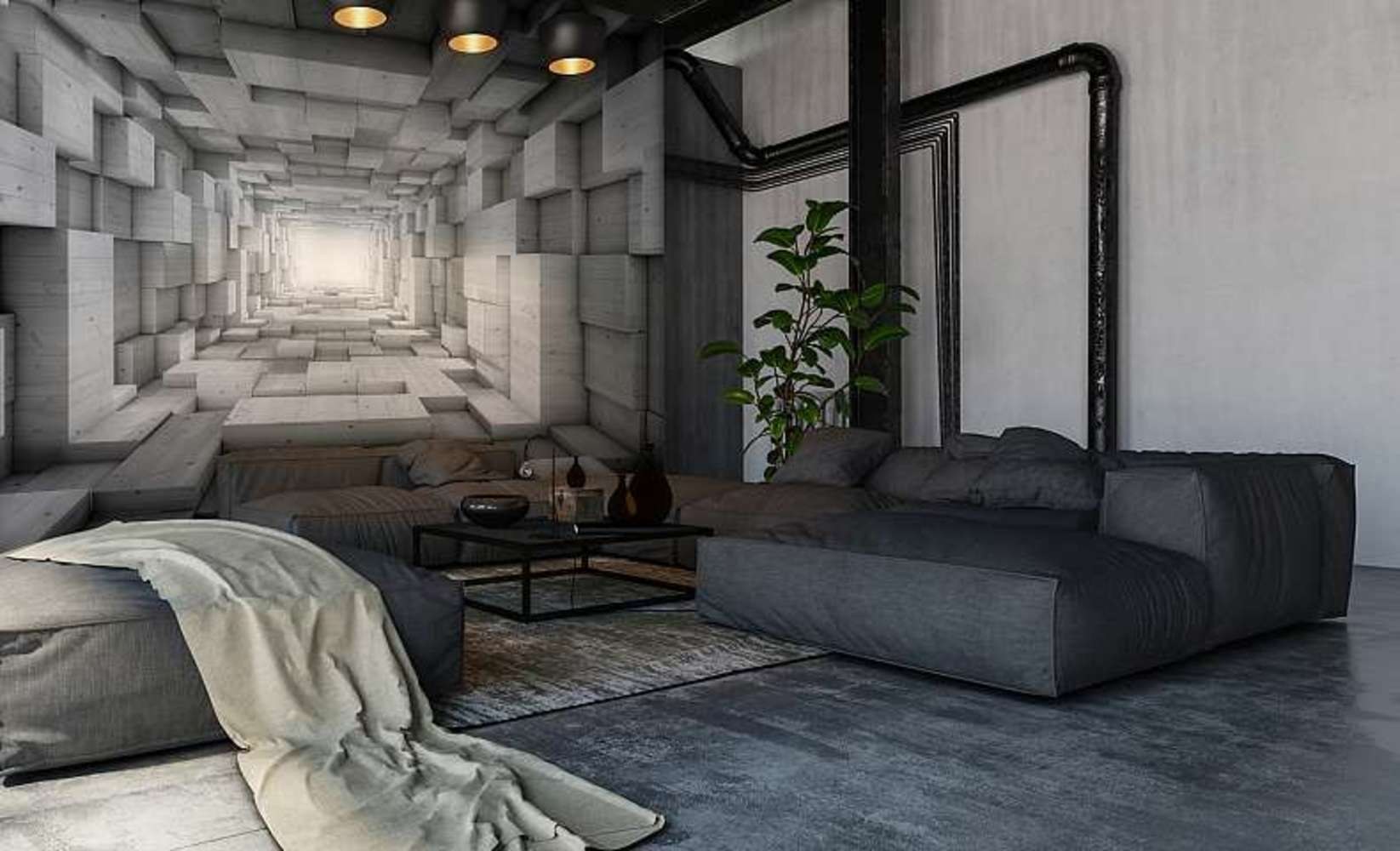 Бетонные стены в интерьере