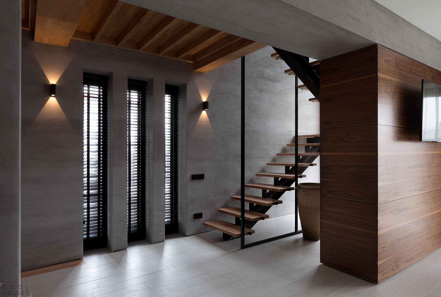 Сочетание бетона и дерева в интерьере