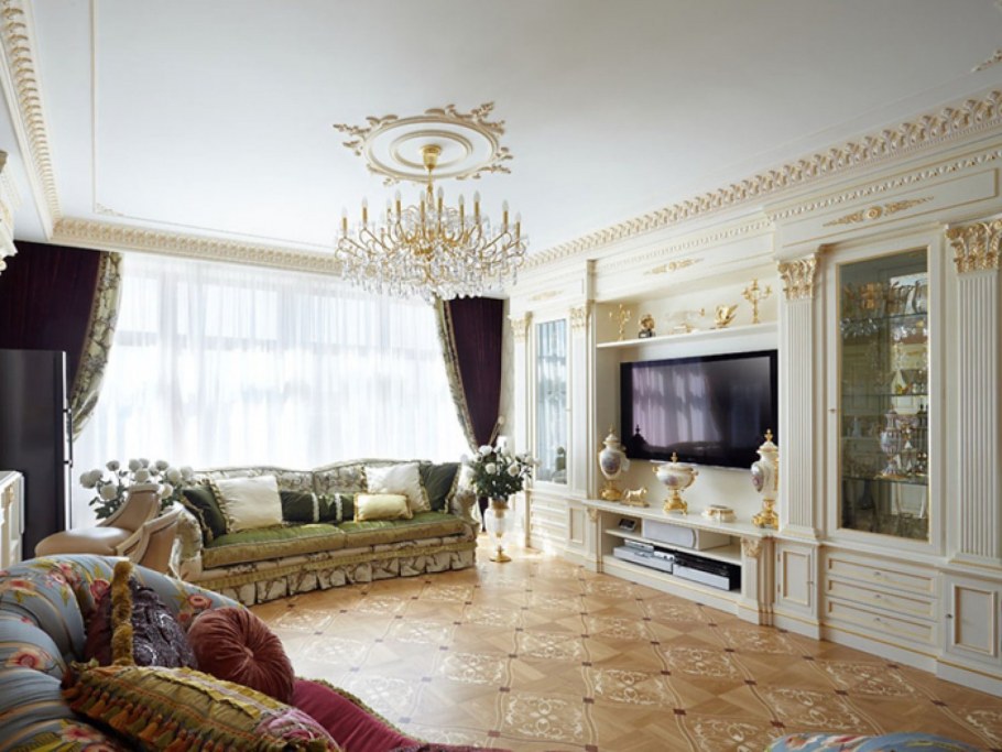 Линкруста в интерьере гостиной в стиле Неоклассика
