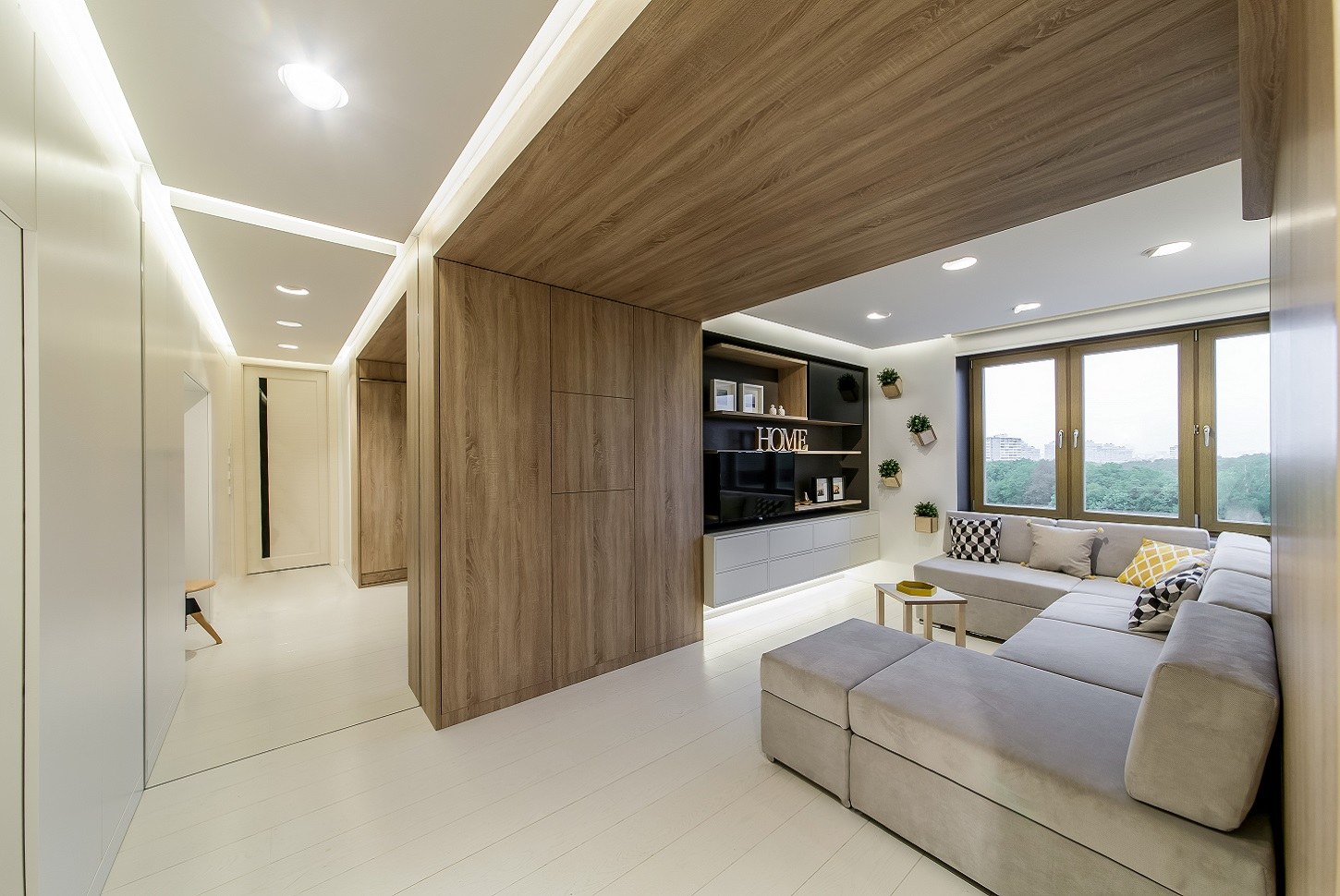 Современный потолок в коридоре