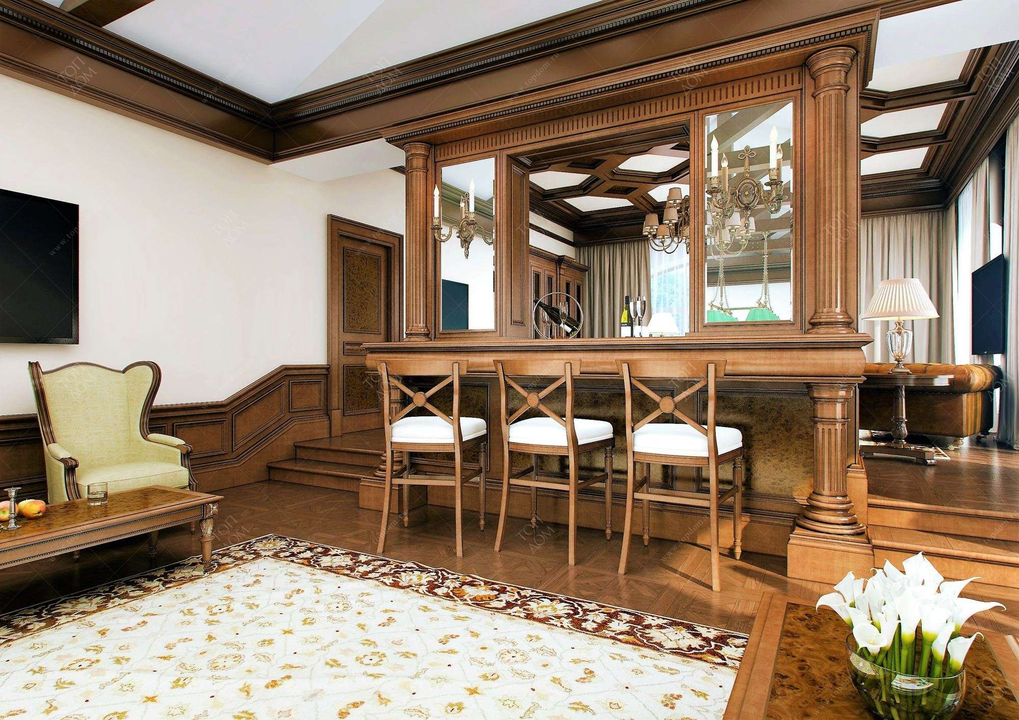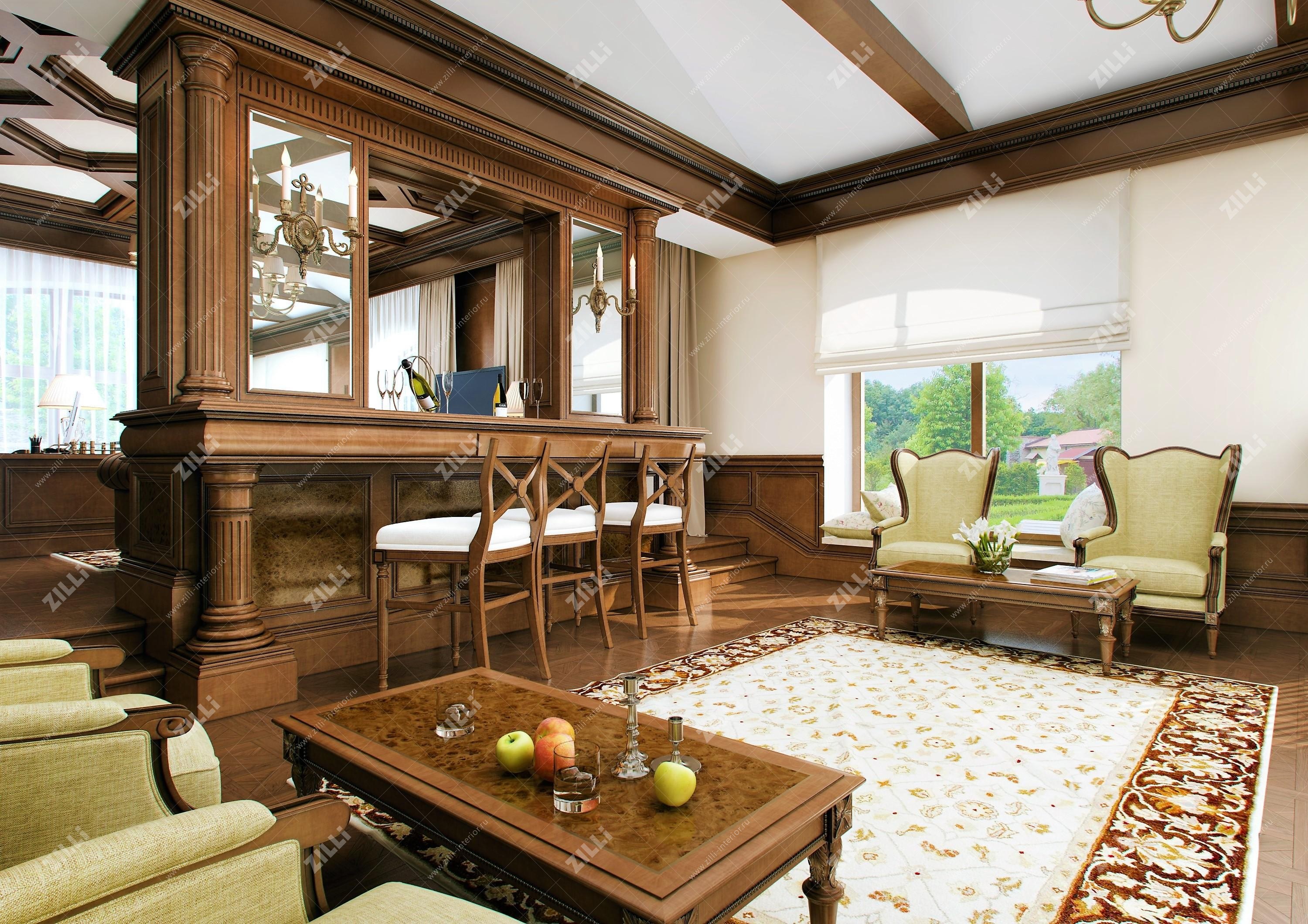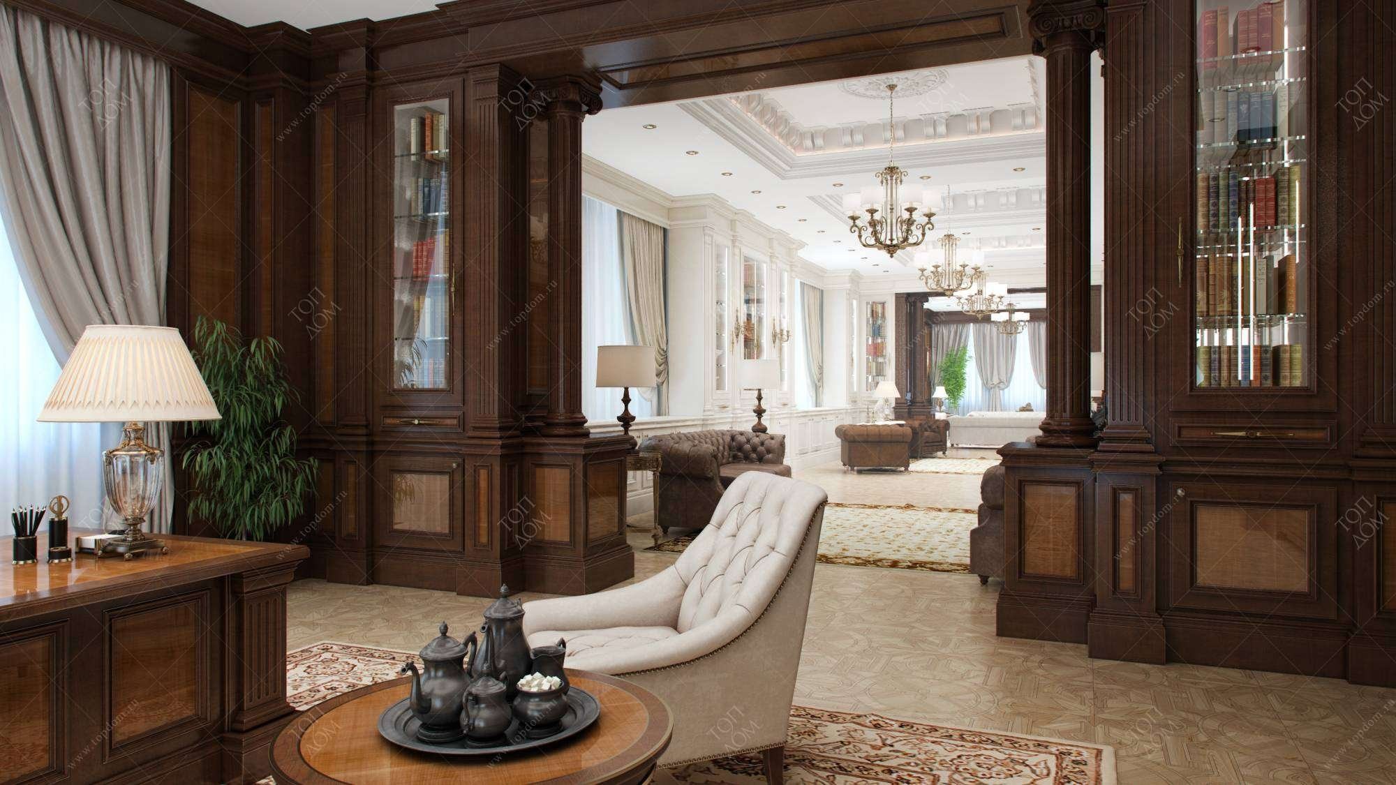 Гостиная с колоннами в классическом стиле