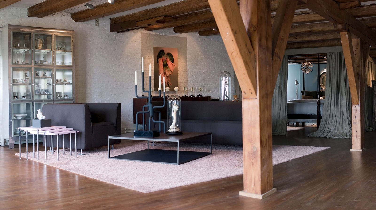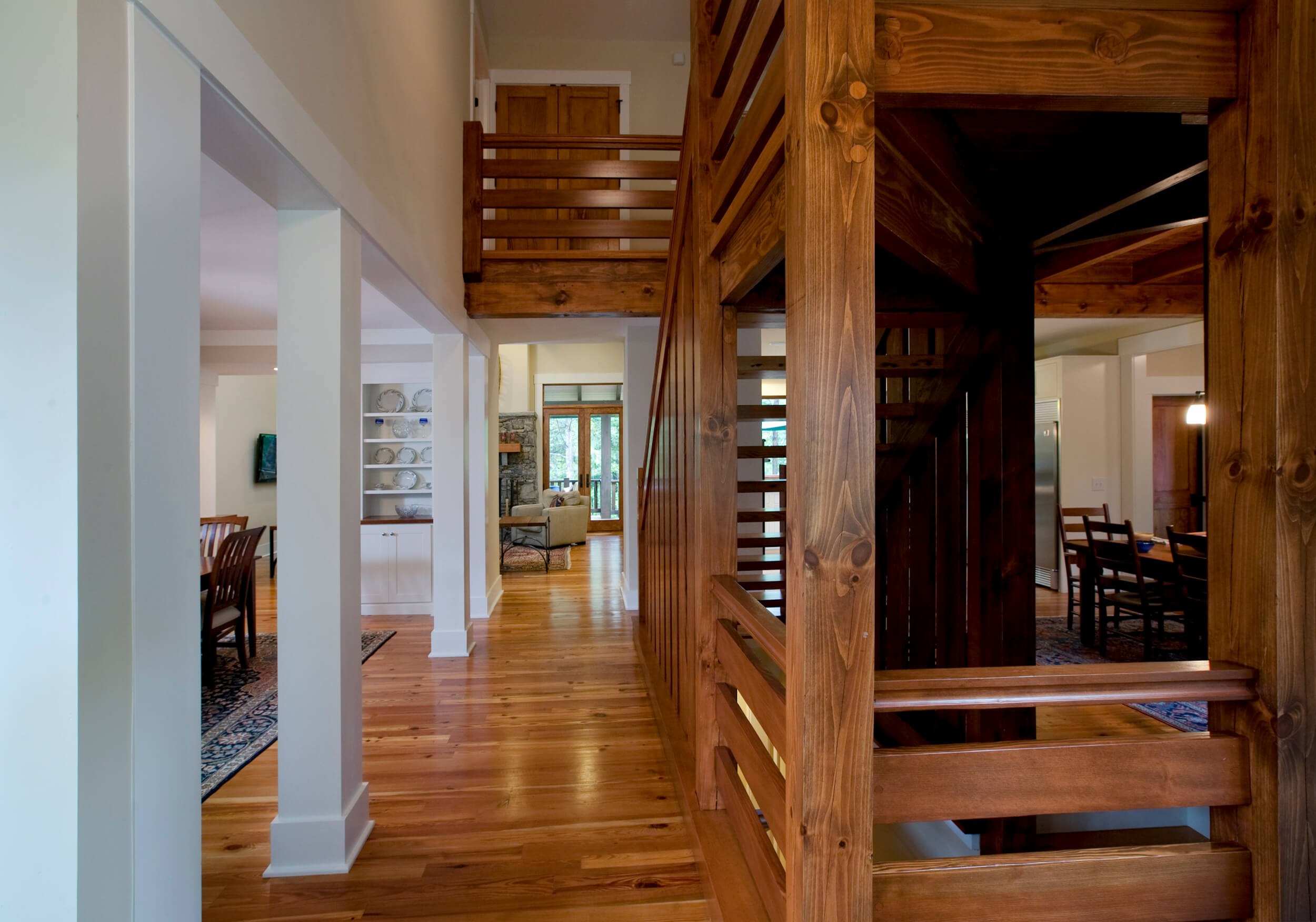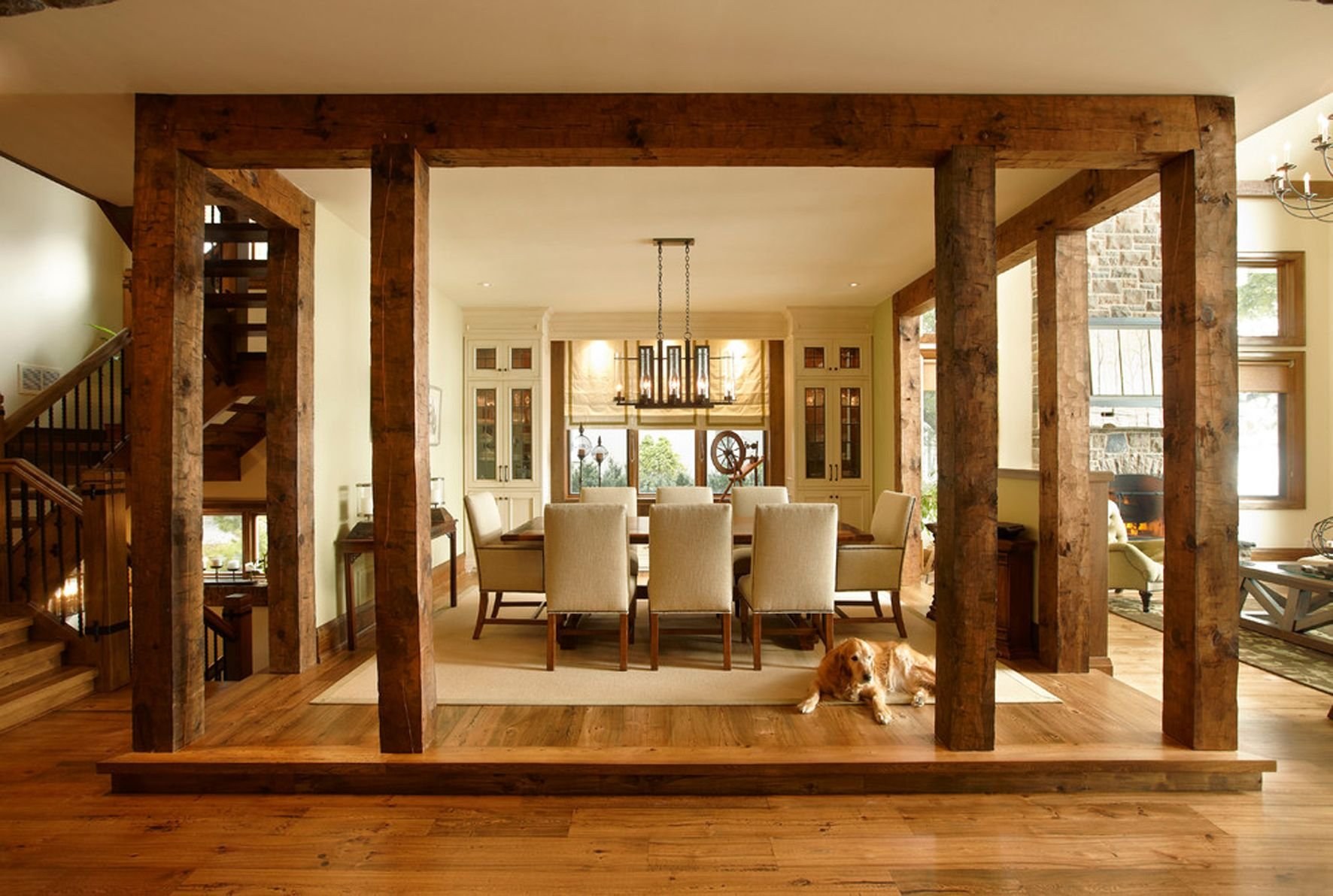 Деревянные балки и столбы в интерьере