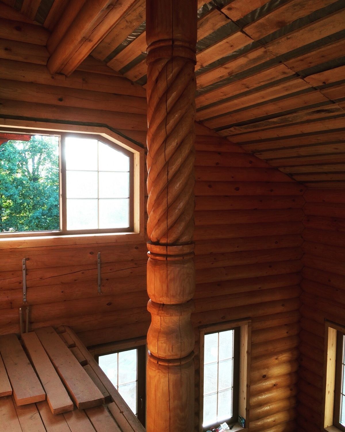 Деревянные столбы в интерьере