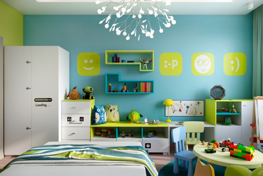 Интерьер детская с зеленым акцентом