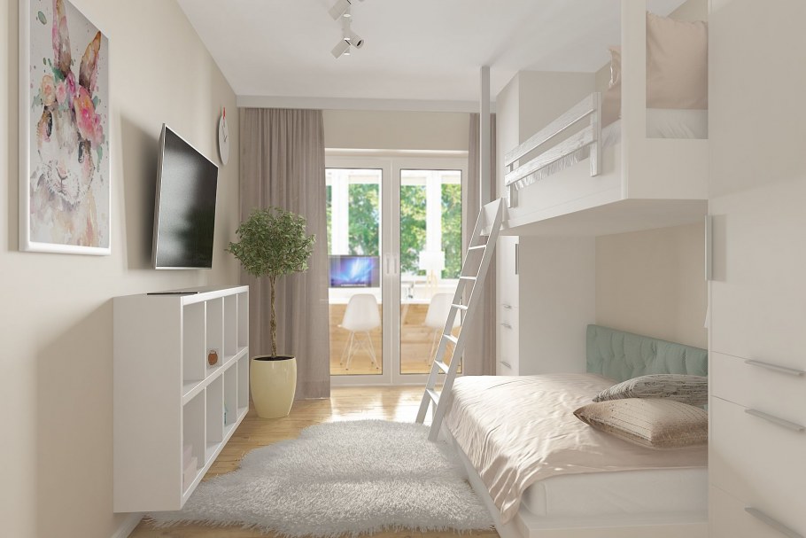 Детская для двоих разнополых с двухъярусной кроватью 20 кв.м